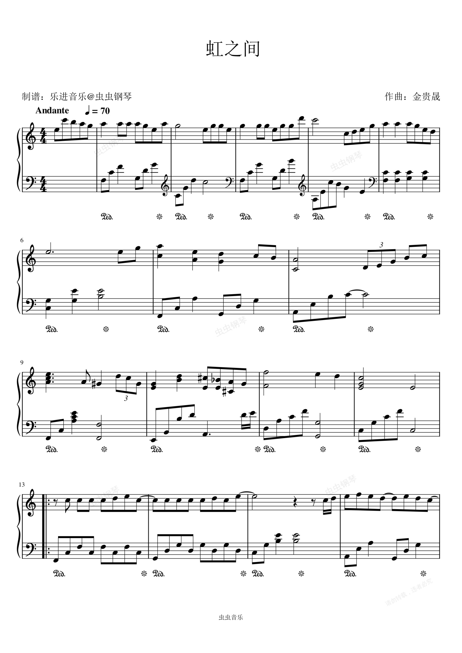 钢琴谱:《虹之间》C调治愈版,爱情公寓4插曲