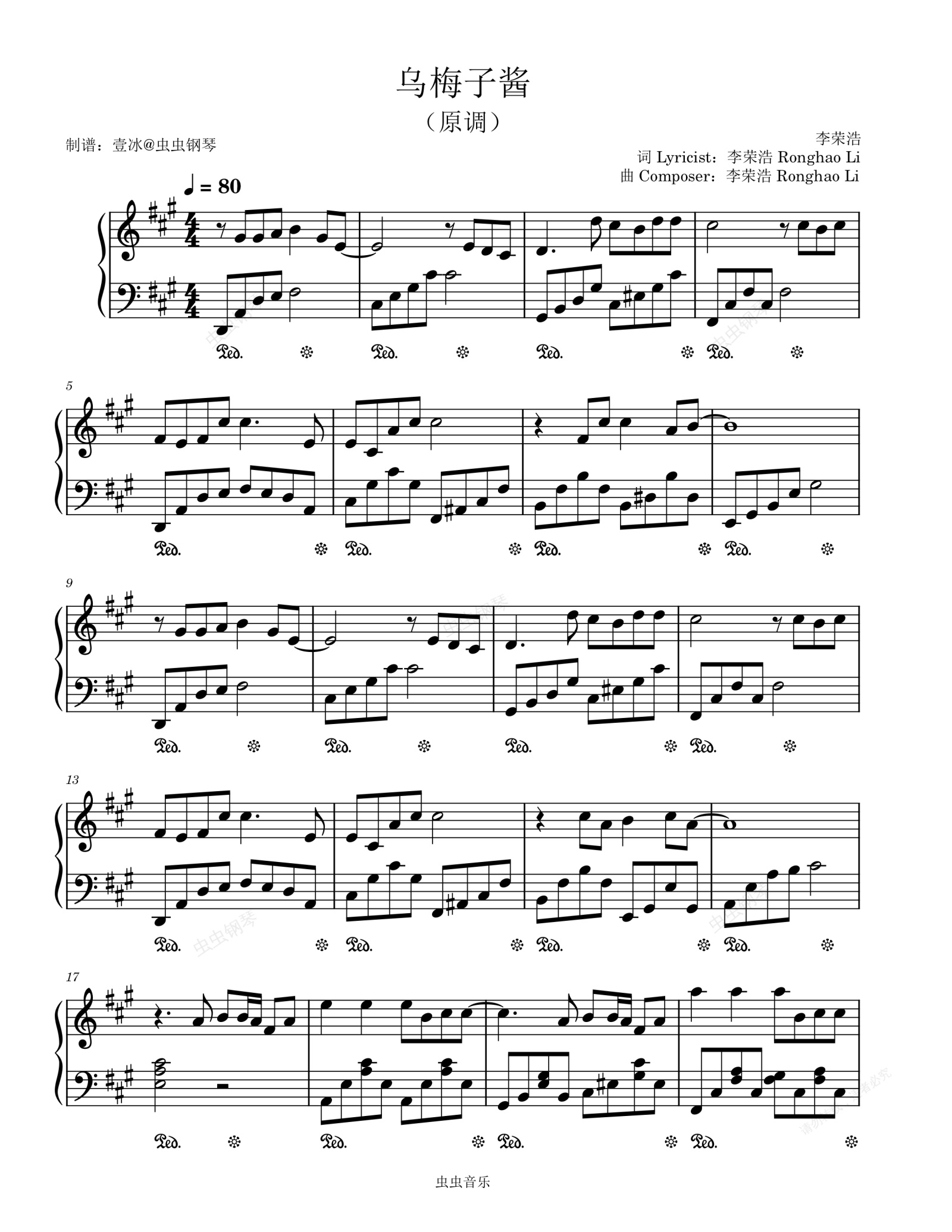 钢琴谱:乌梅子酱//李荣浩-原调