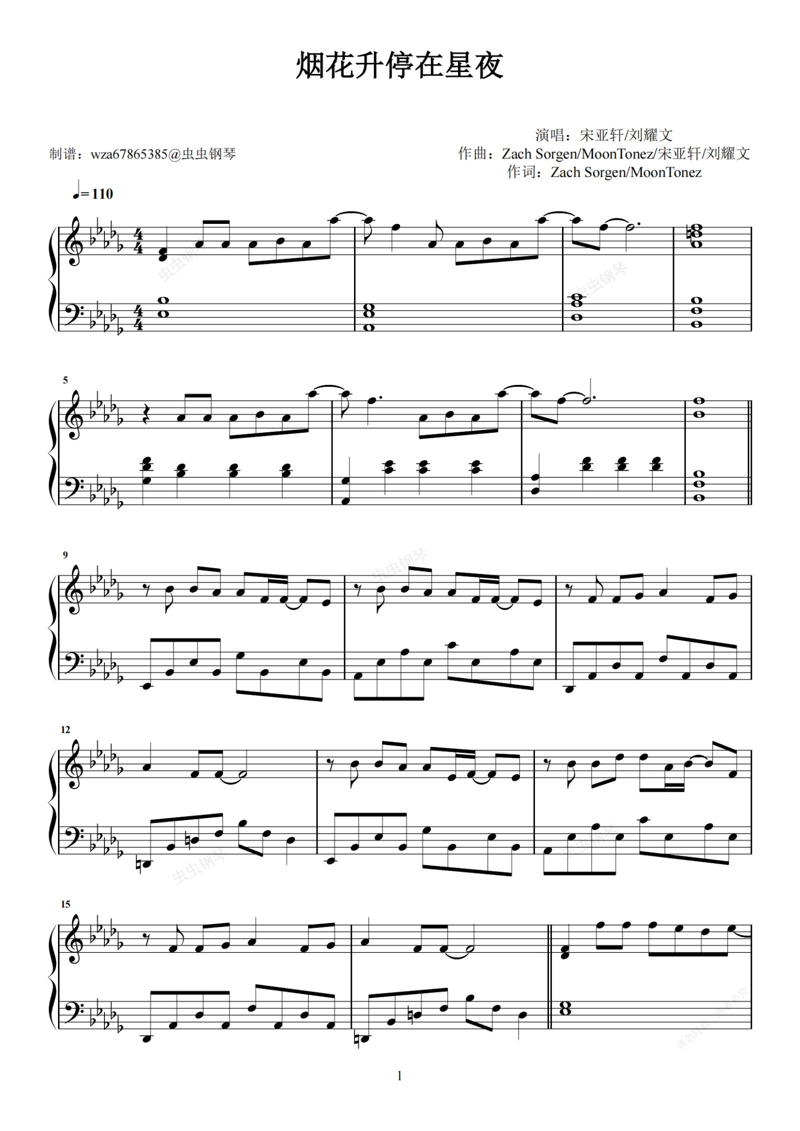 钢琴谱:烟花升停在星夜
