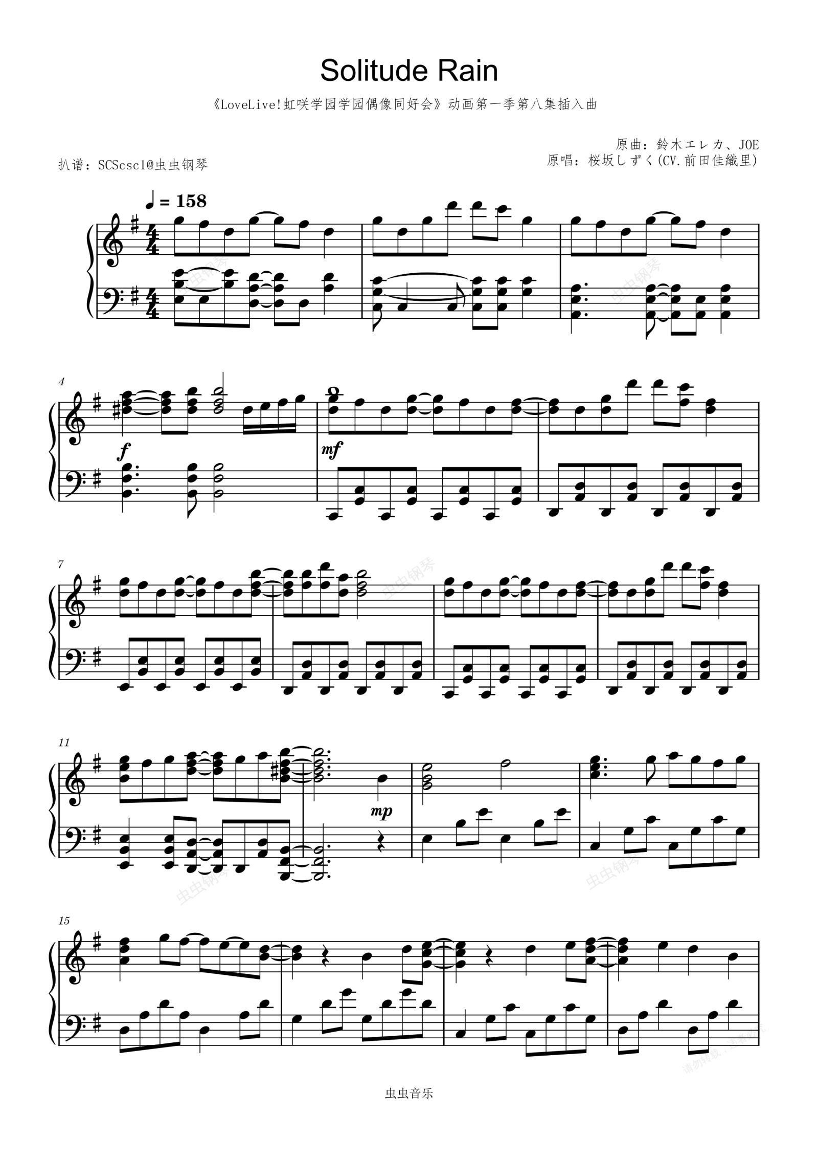 钢琴谱:LoveLive!虹咲学园第一季第八集插曲-Solitude Rain完整版