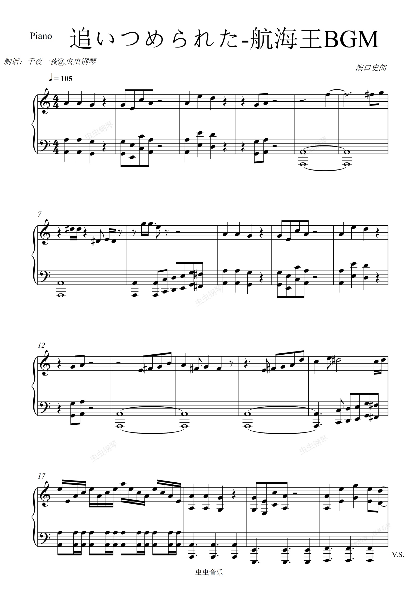 钢琴谱:追いつめられた-走投无路-Overtaken-航海王BGM