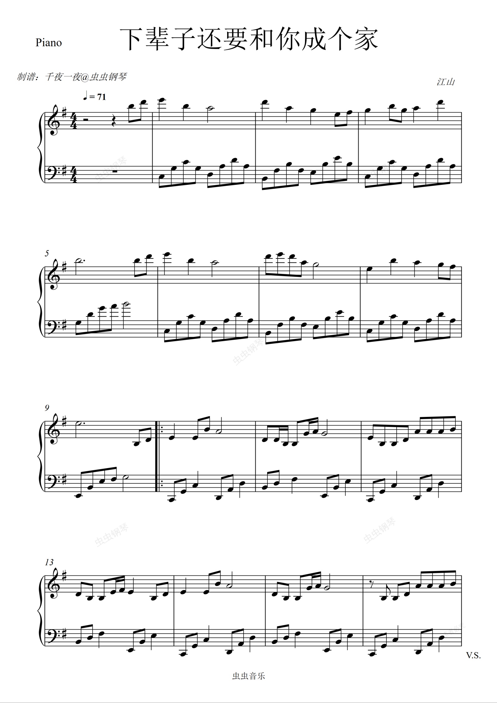 钢琴谱:彤大王《下辈子还要和你成个家》等到满嘴没牙说不清楚话!
