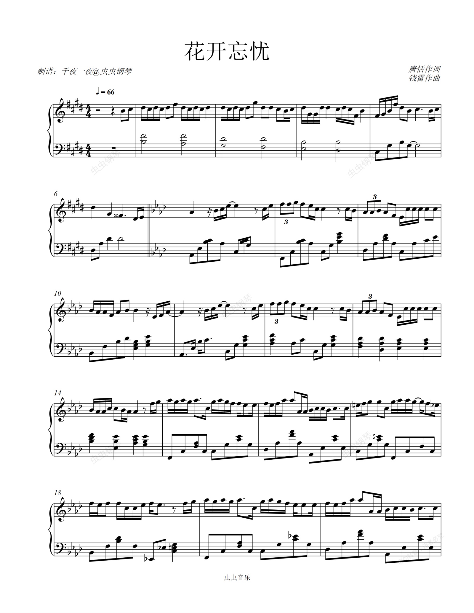 钢琴谱:【周深】《花开忘忧》钢琴还原 感人至深T﹏T