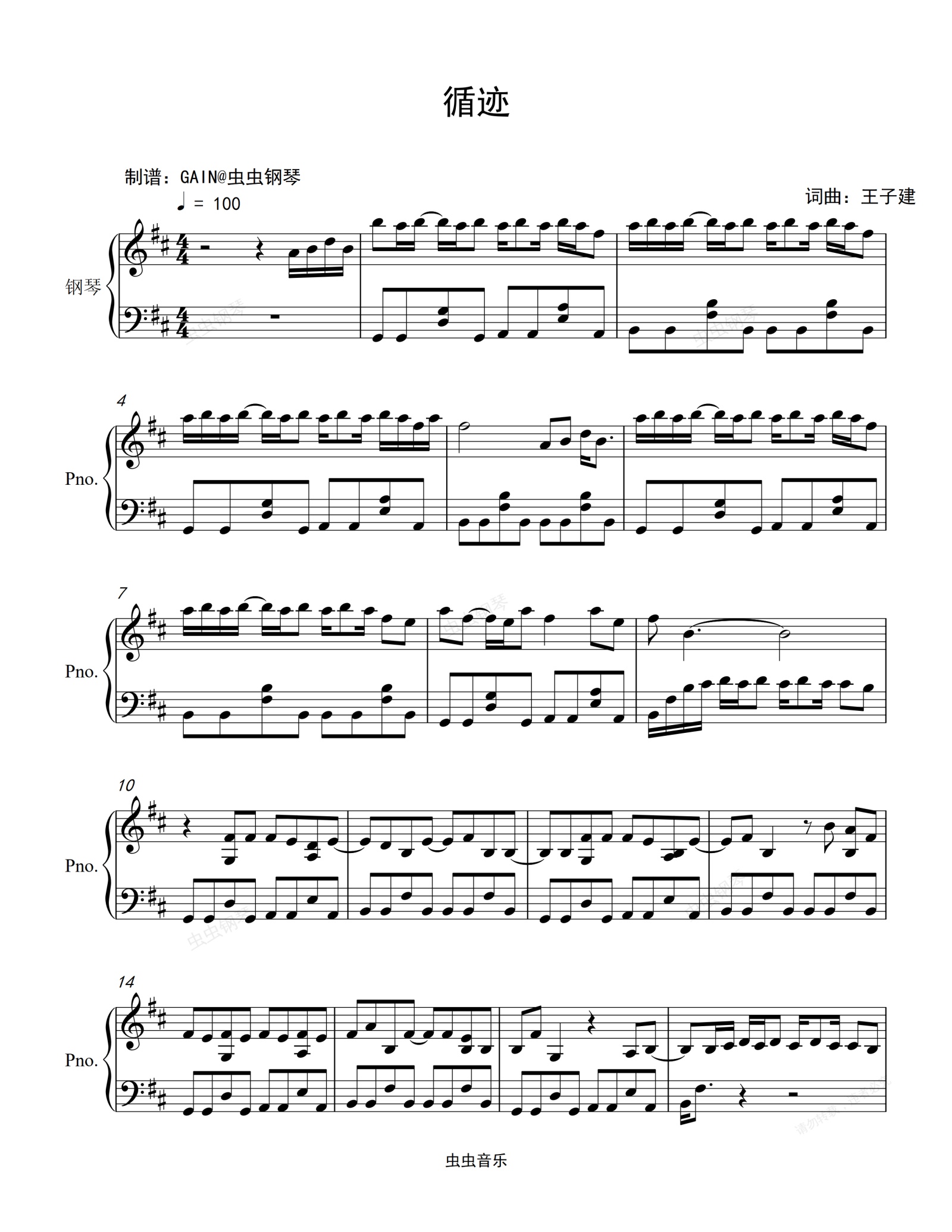 钢琴谱:循迹-我看着零落的枯的碎的风肆意地-王子建