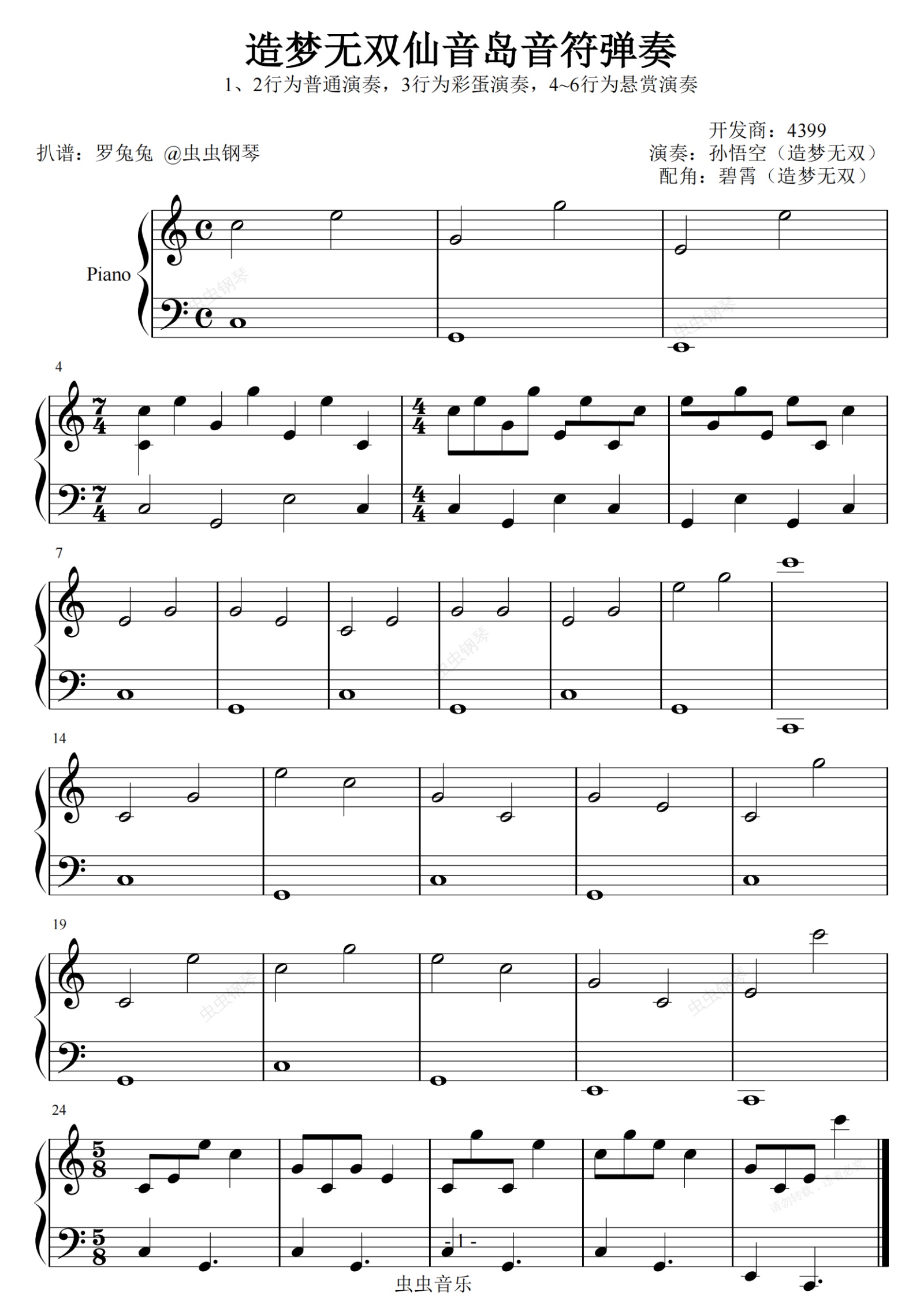 钢琴谱:造梦无双(仙音岛音符弹奏)(Do Mi Sol练习)