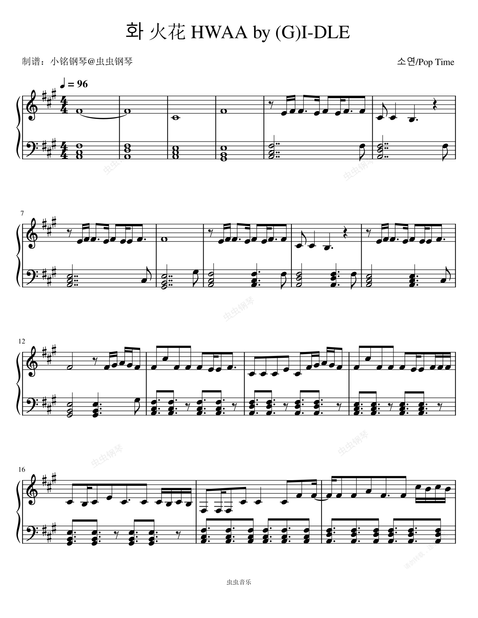 钢琴谱:화(火花) - (HWAA) - (G)I-DLE