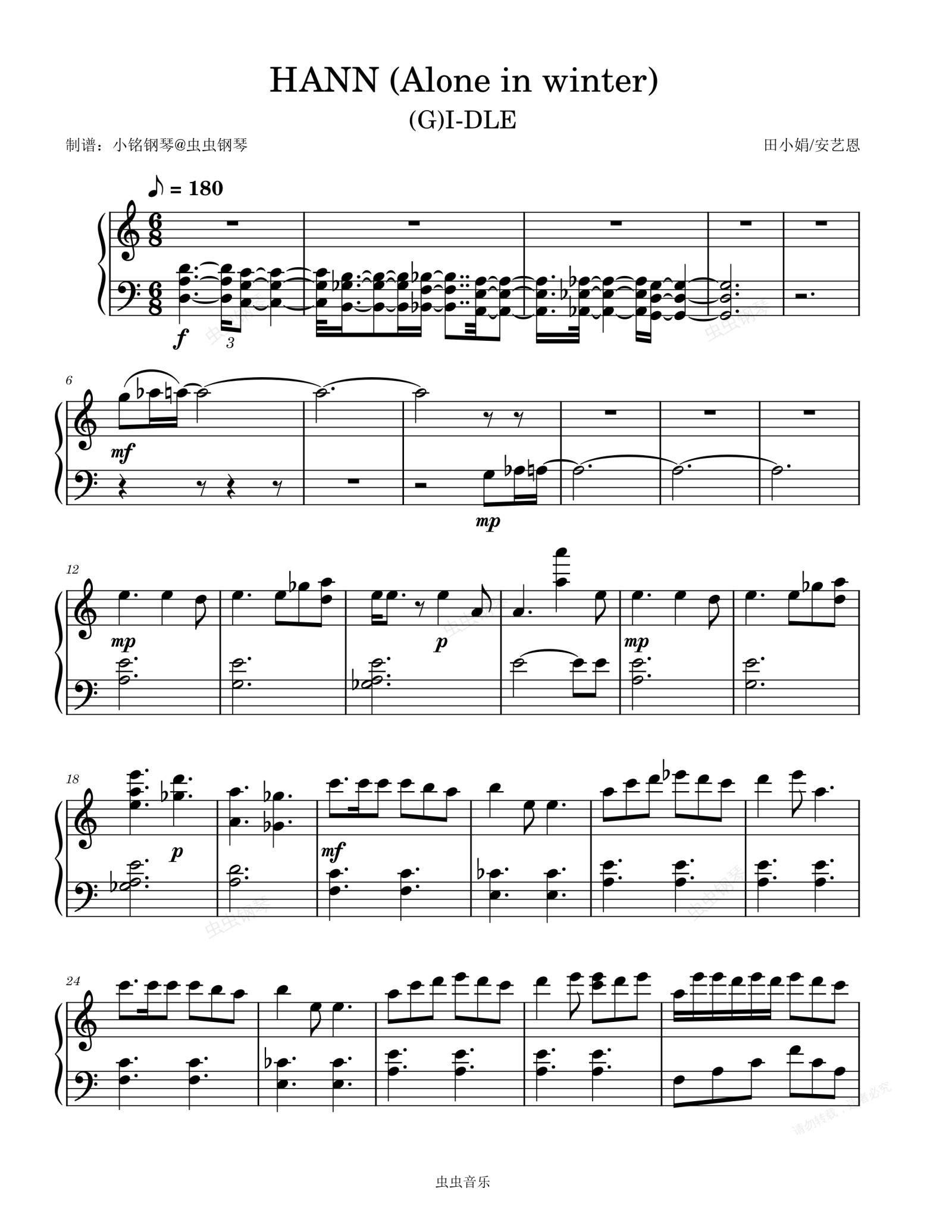 钢琴谱:한(寒) - HANN(Alone in winter) - (G)I-DLE
