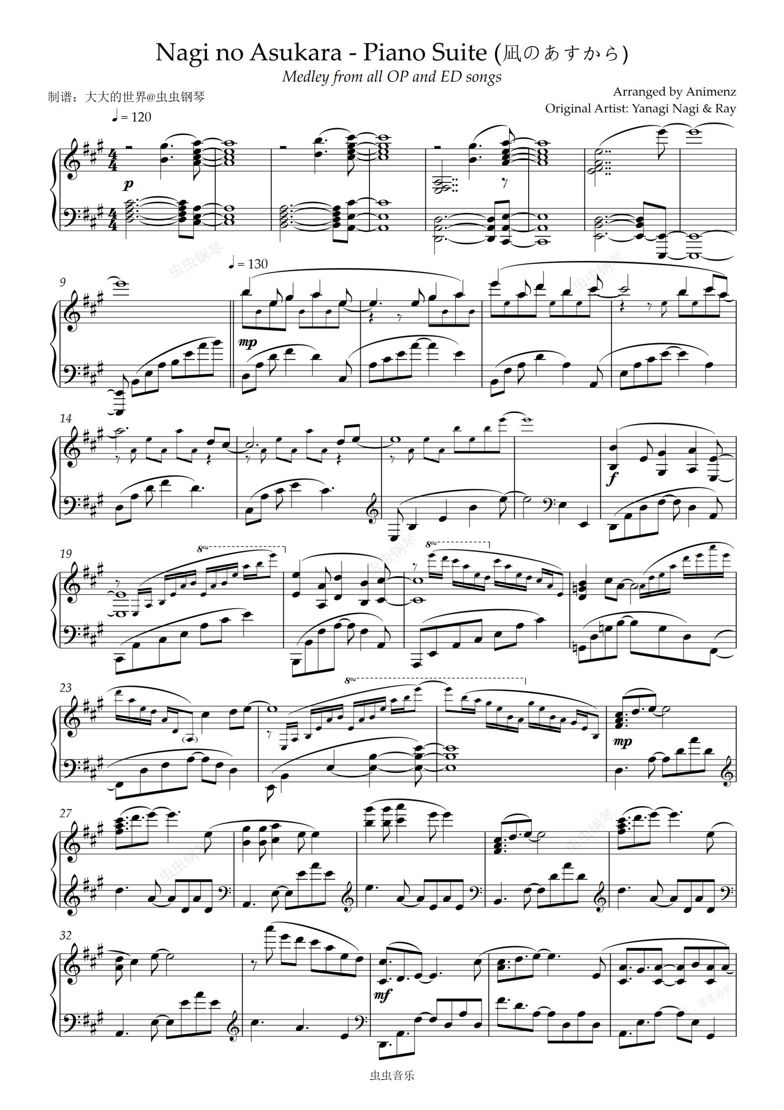 钢琴谱:【Animenz】Nagi no Asu kara Piano Medley - All OPs and EDs