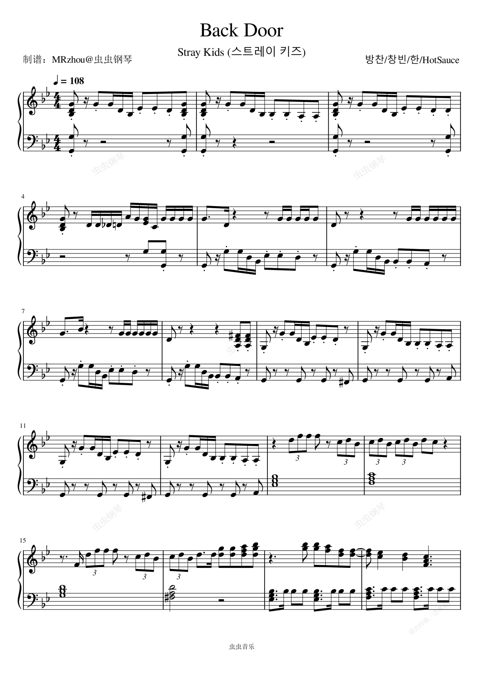 钢琴谱:Back Door - Stray Kids (스트레이 키즈)