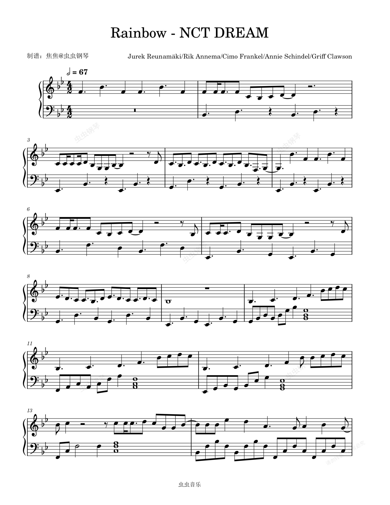 钢琴谱:书签 (Rainbow) (책갈피) - NCT DREAM (엔시티 드림)