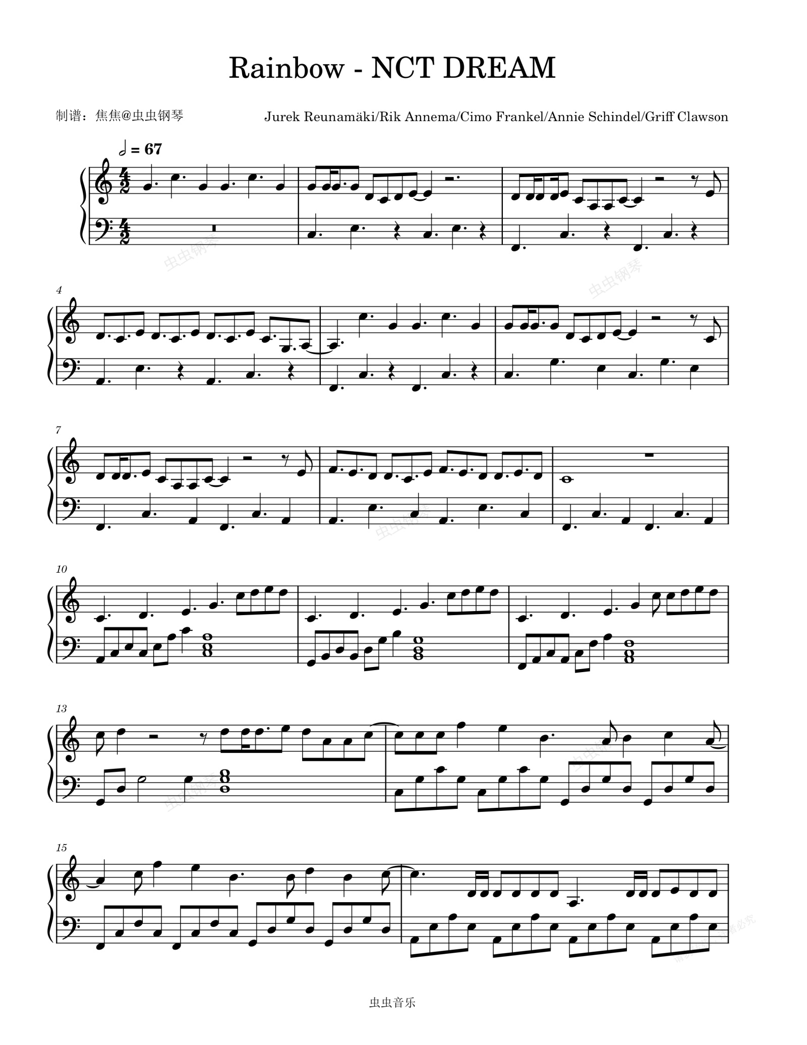 钢琴谱:书签 (Rainbow) (책갈피) - NCT DREAM (엔시티 드림)