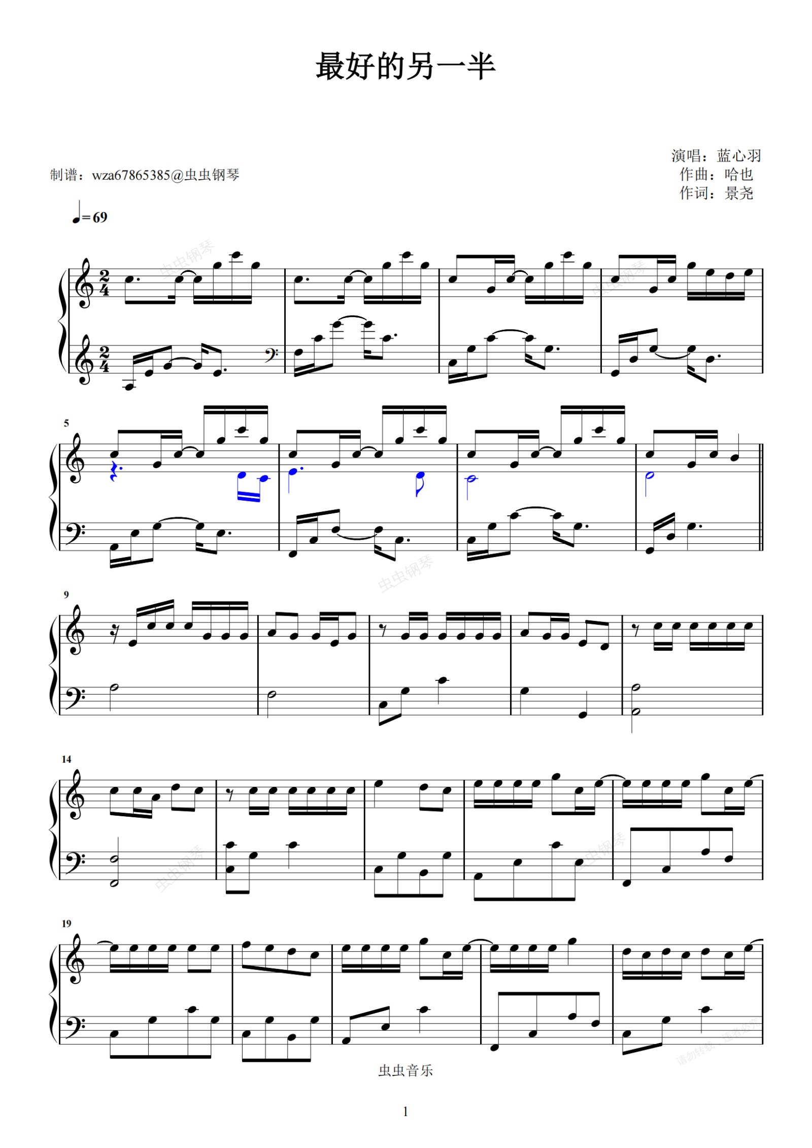钢琴谱:最好的另一半