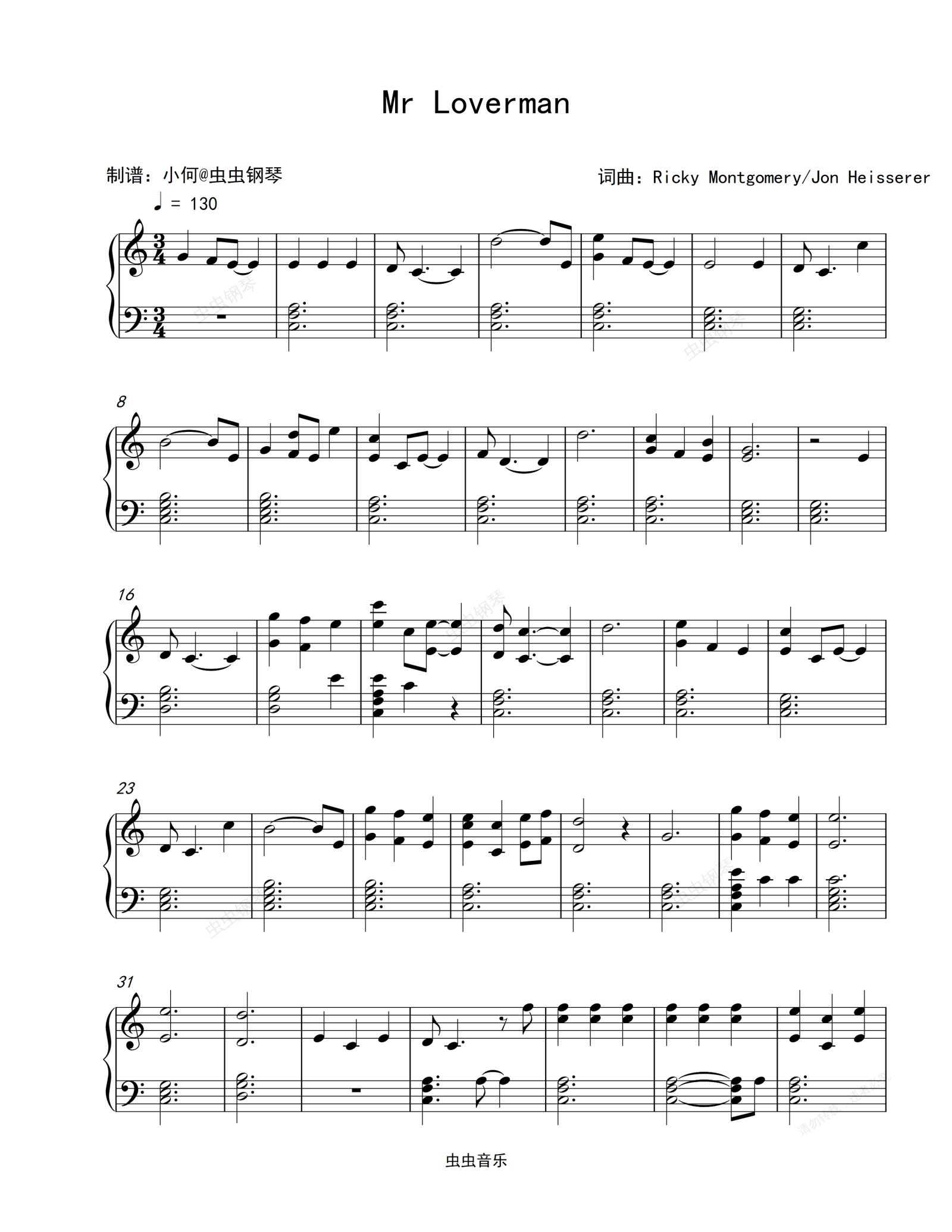钢琴谱:Mr. Loverman-Ricky Montgomery