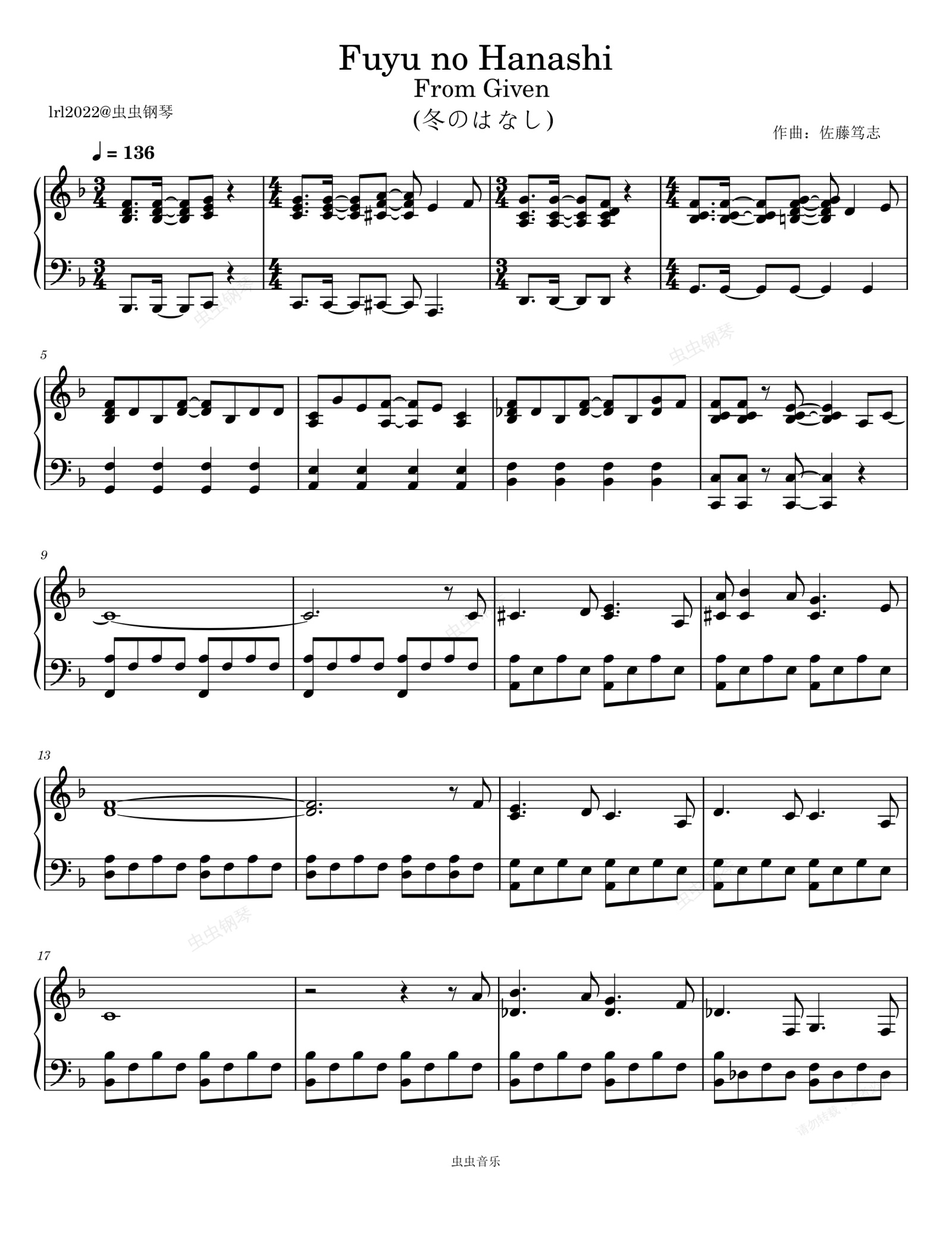 钢琴谱:Fuyu no Hanashi-冬之华- (冬のはなし)