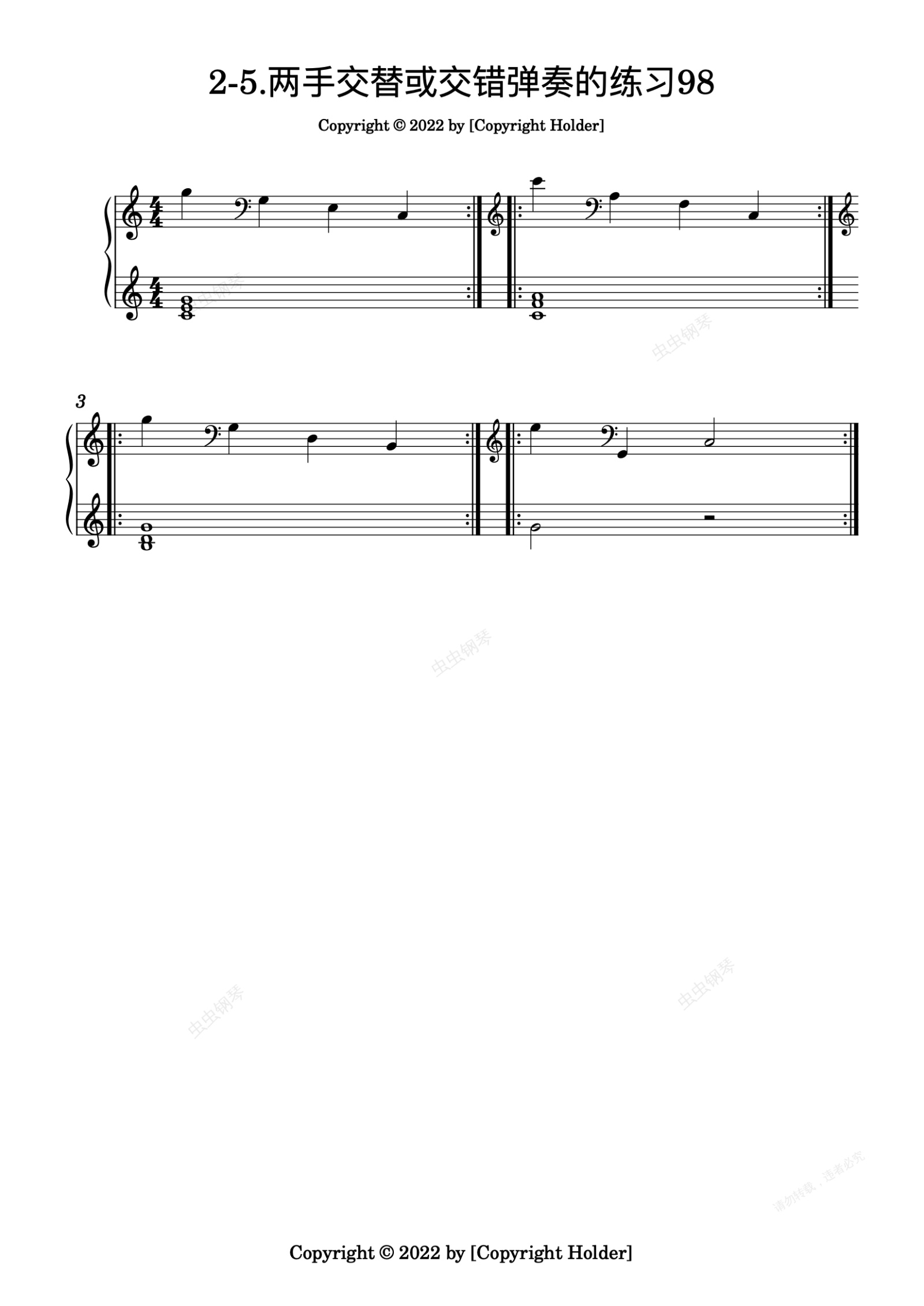 钢琴谱:2-5 两手交替或交错弹奏的练习98