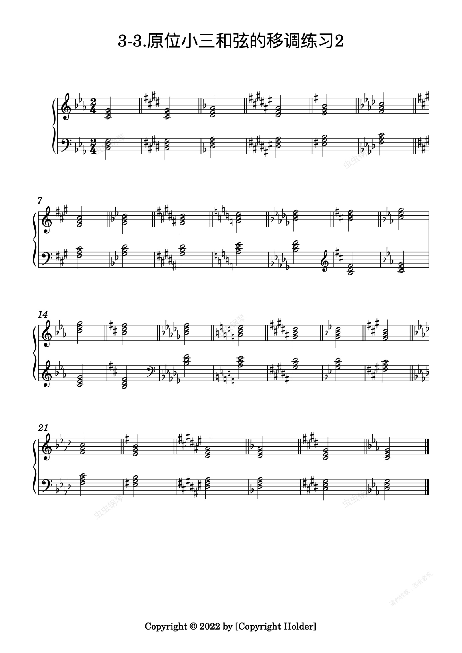 钢琴谱:3-3 原位小三和弦的移调练习2