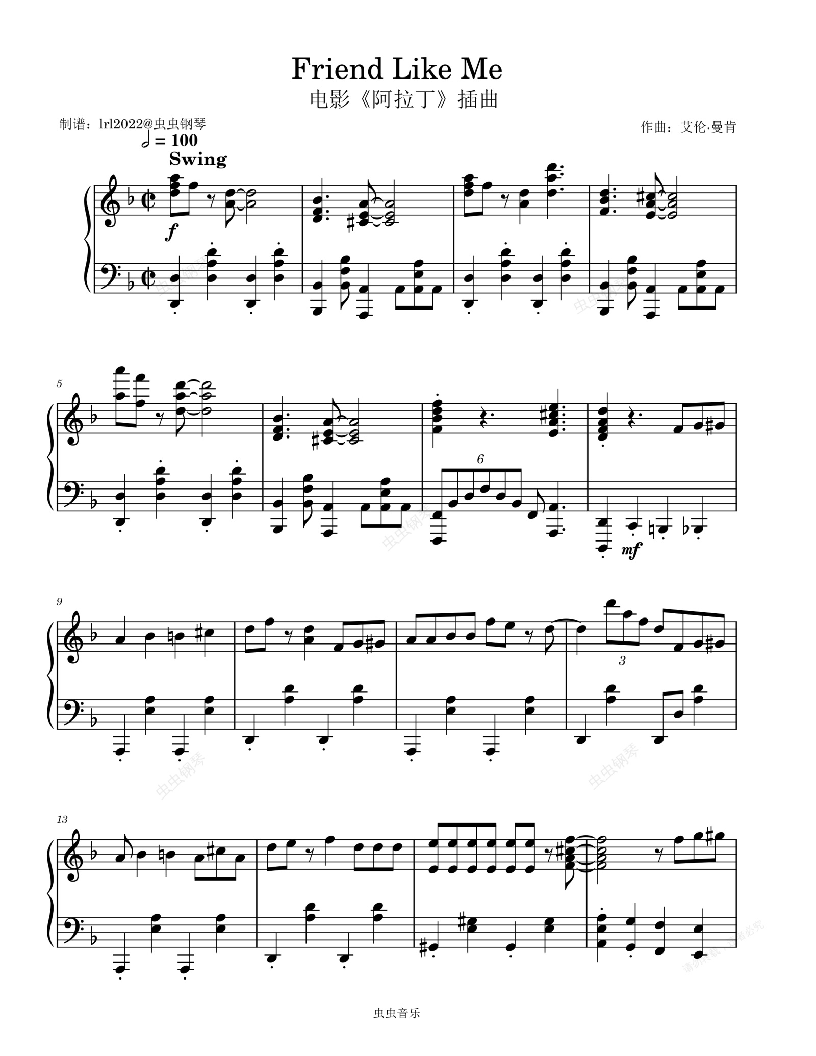 钢琴谱:Friend Like Me-像我这样的朋友-电影《阿拉丁》插曲