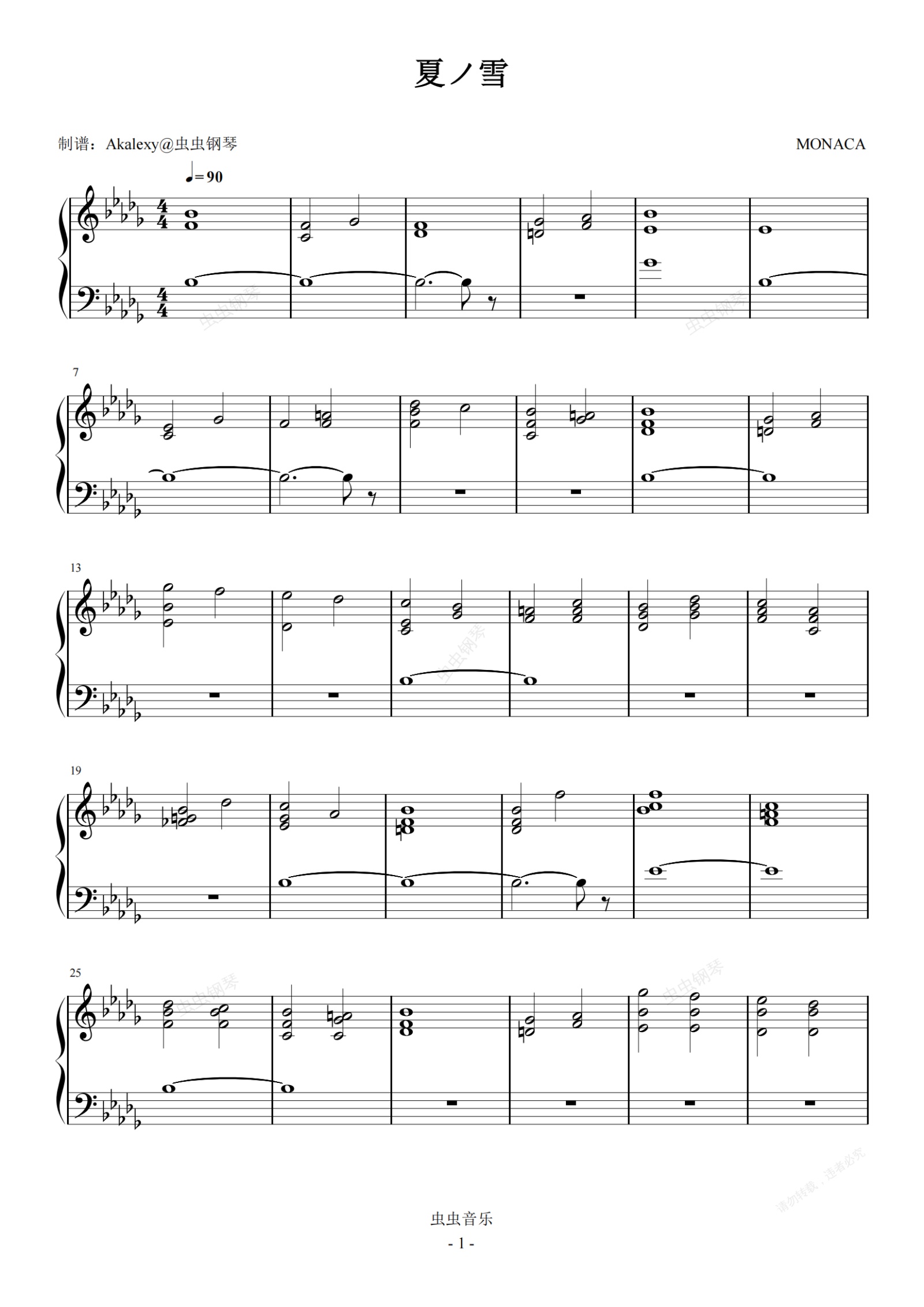 钢琴谱:【尼尔伪装者】夏ノ雪