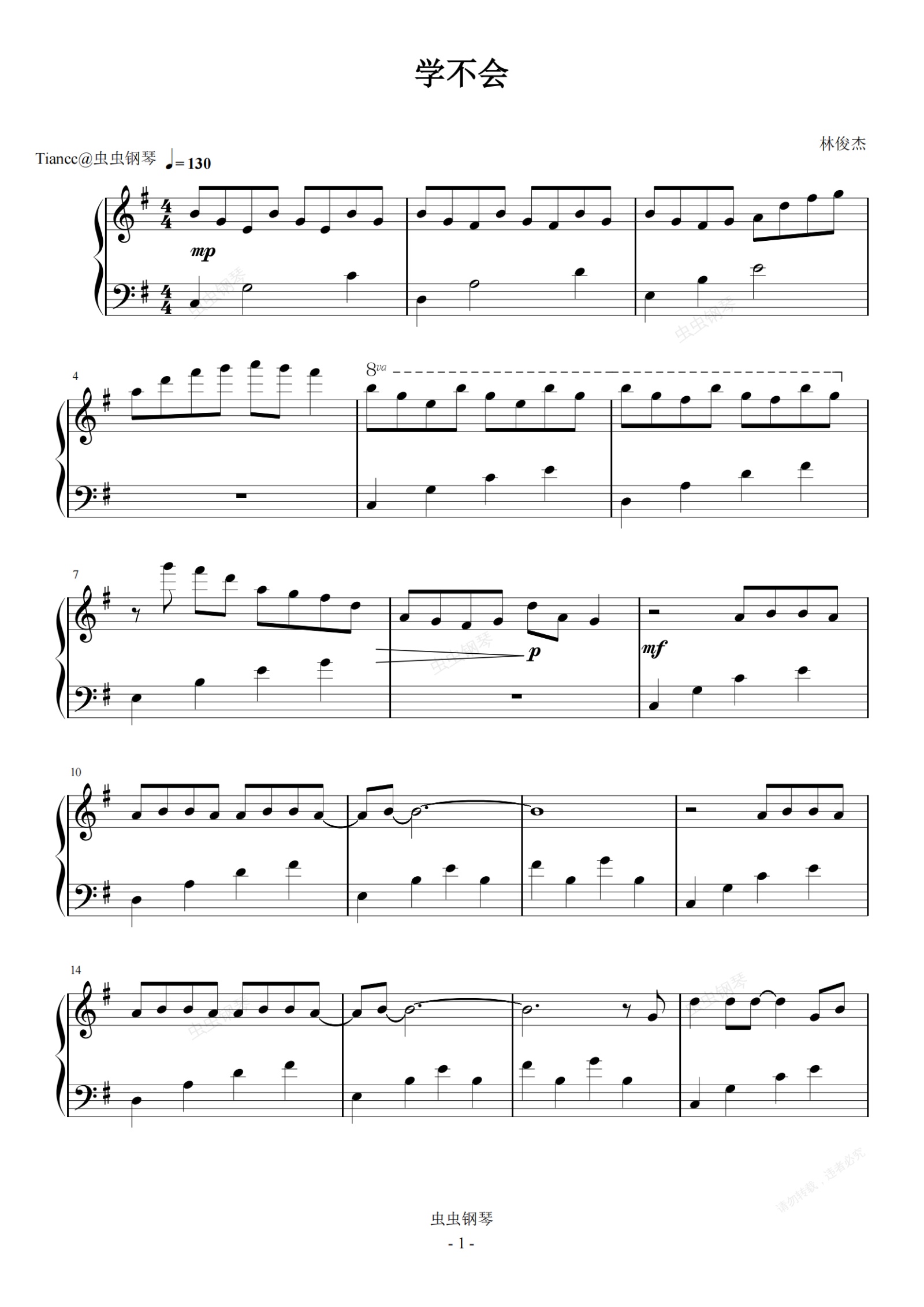 钢琴谱:《学不会》林俊杰,成人教学专用,表示学得会~