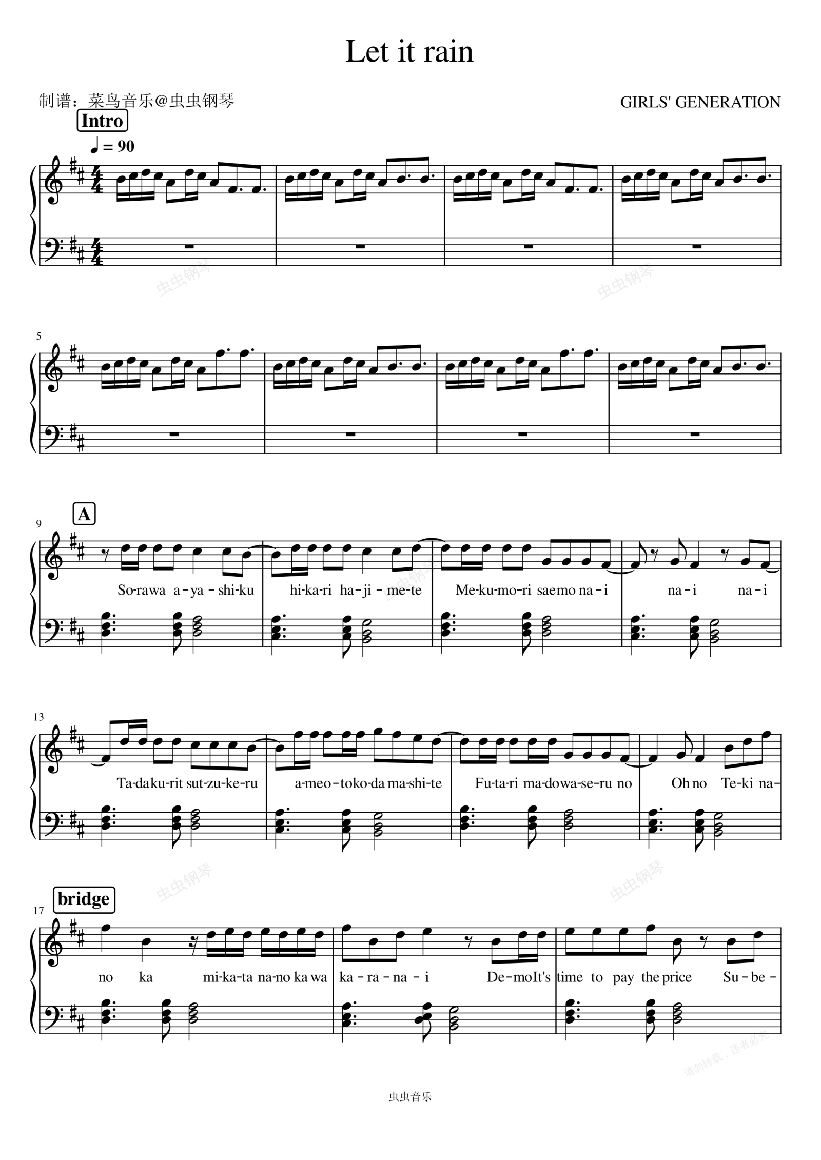 钢琴谱:Let it rain - 少女时代 (소녀시대)