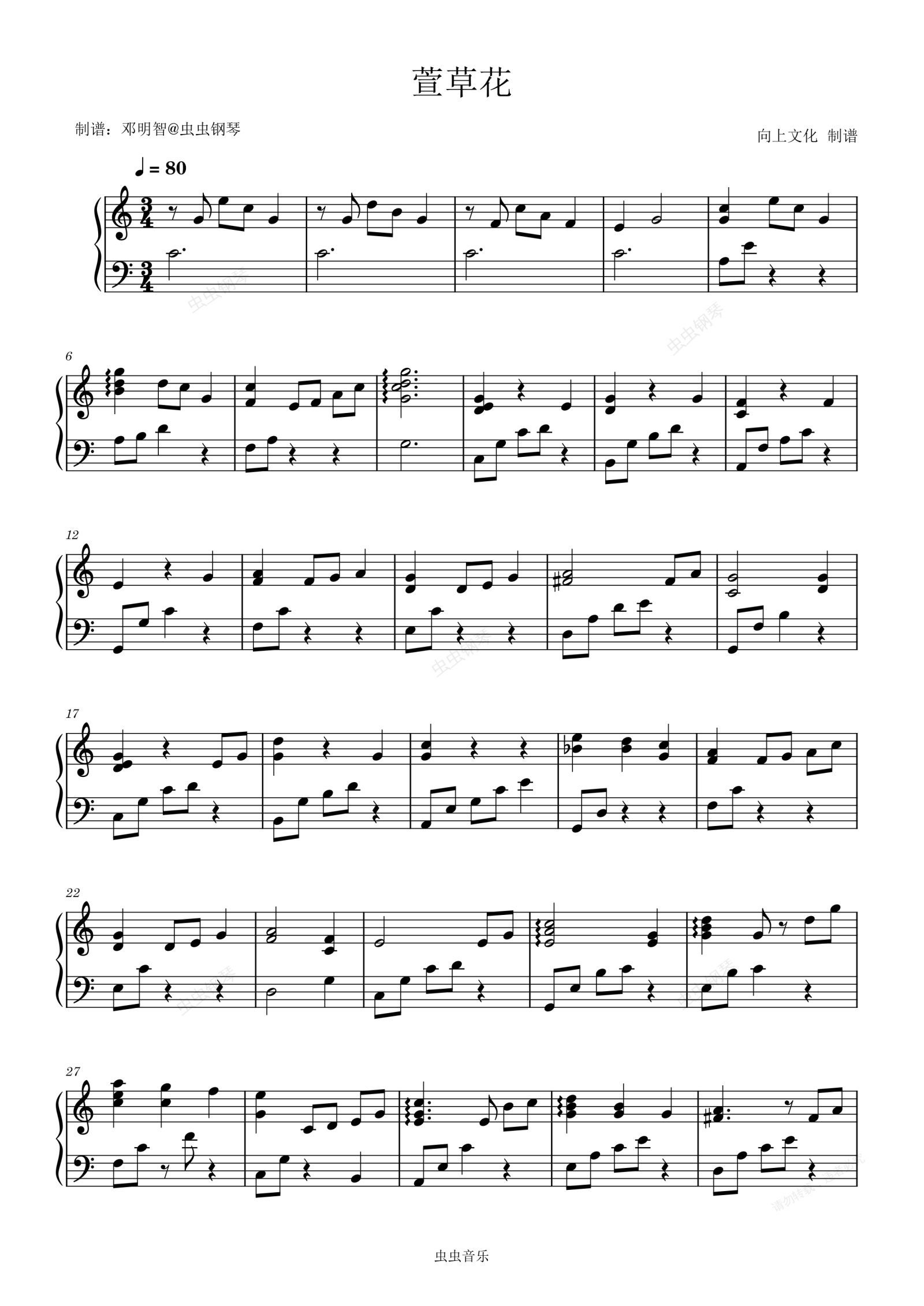 钢琴谱:《萱草花》(C调钢琴伴奏谱)
