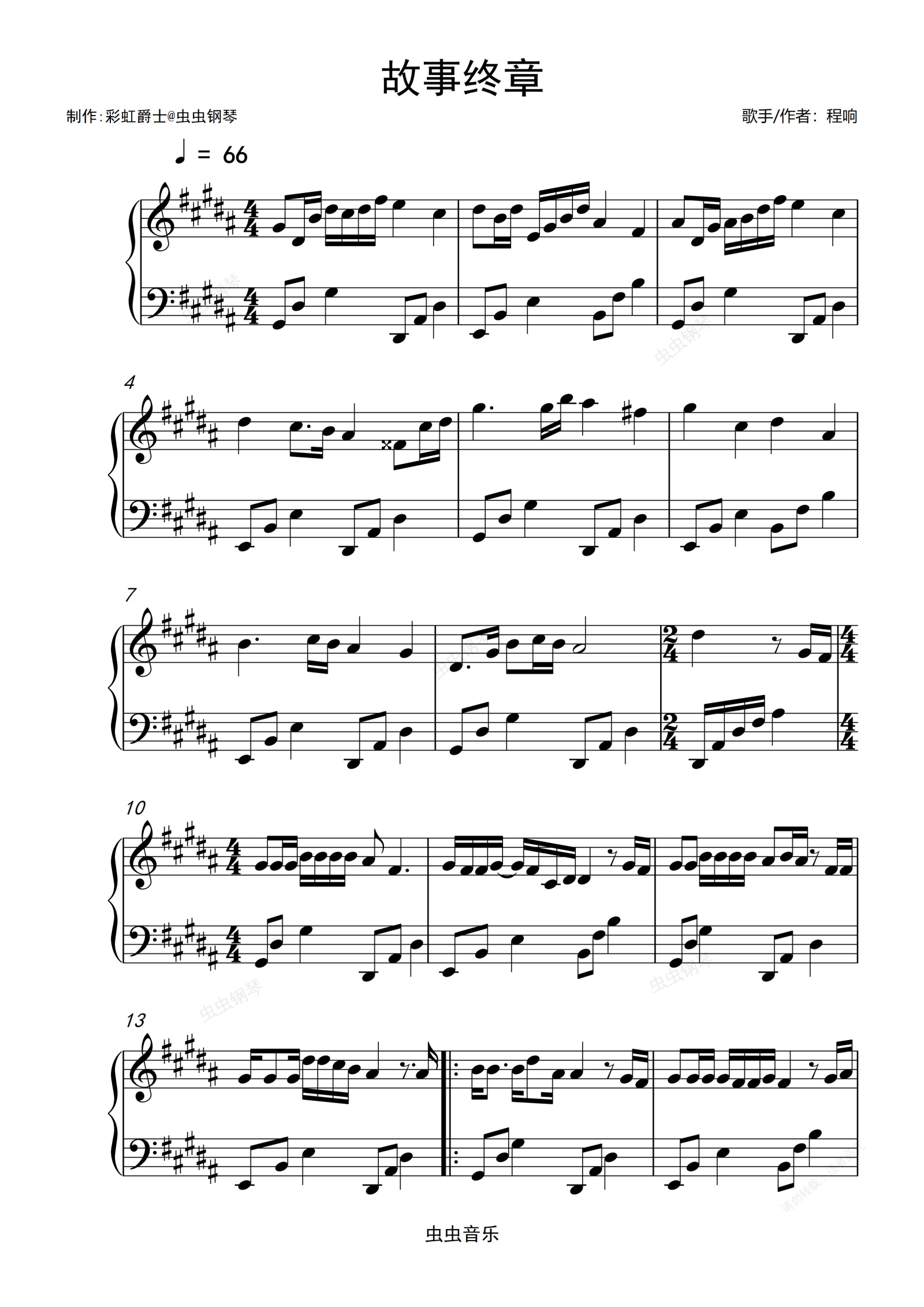 钢琴谱:故事终章 程响 钢琴谱 完整版