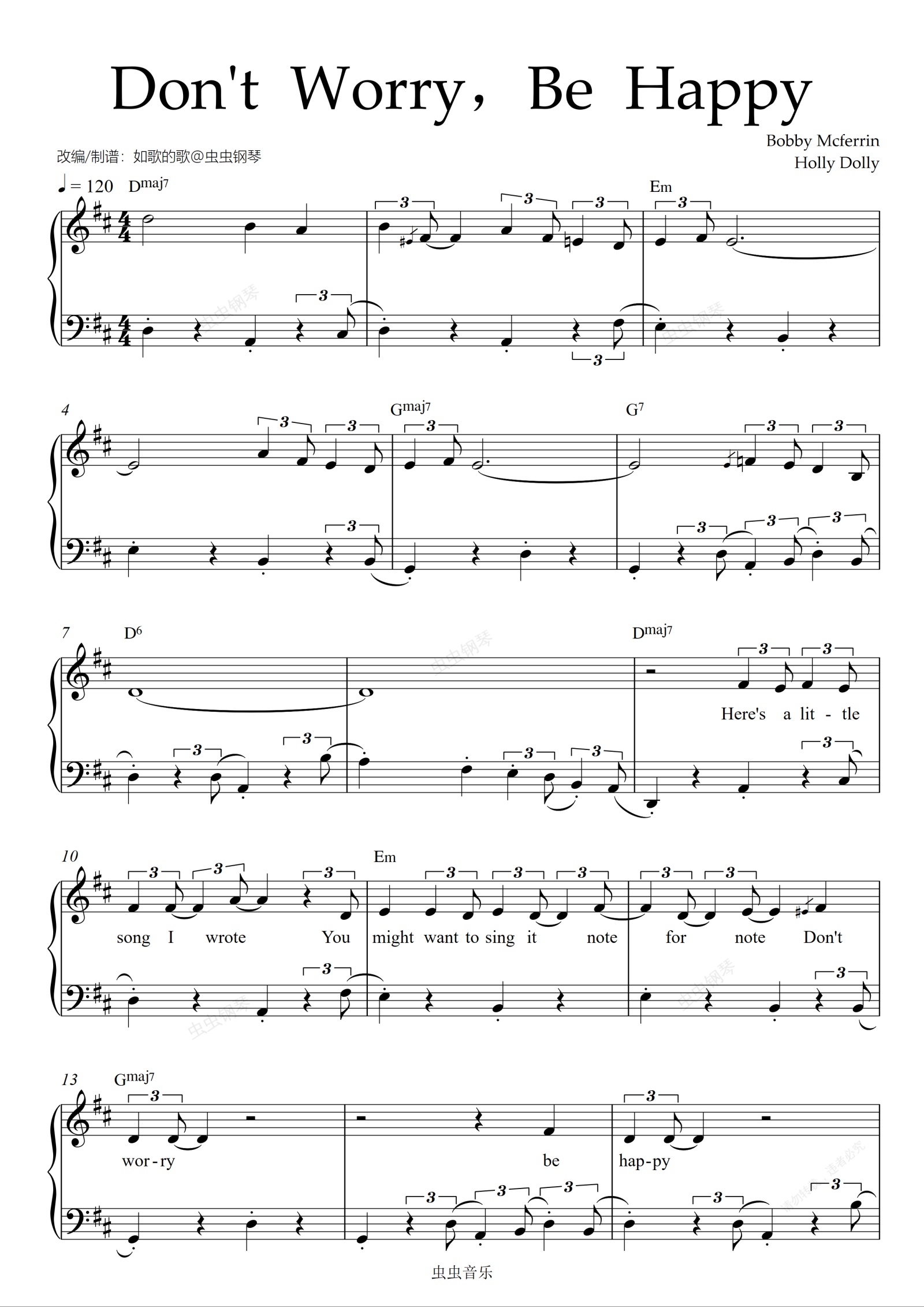 钢琴谱:Don't Worry,Be Happy-1980’s Acappella神曲附词功能可弹唱
