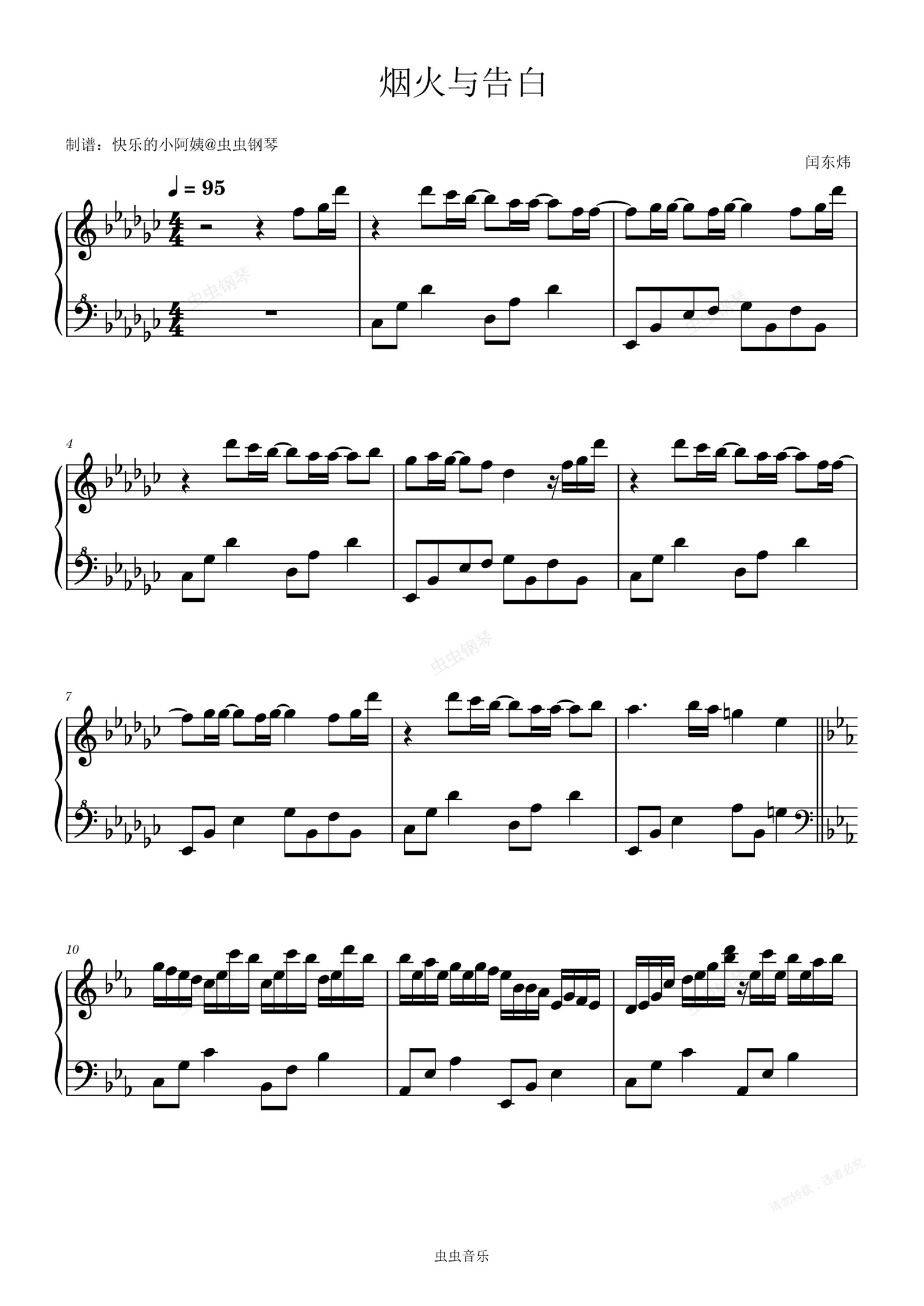钢琴谱:烟火与告白 闰东炜 纯音乐