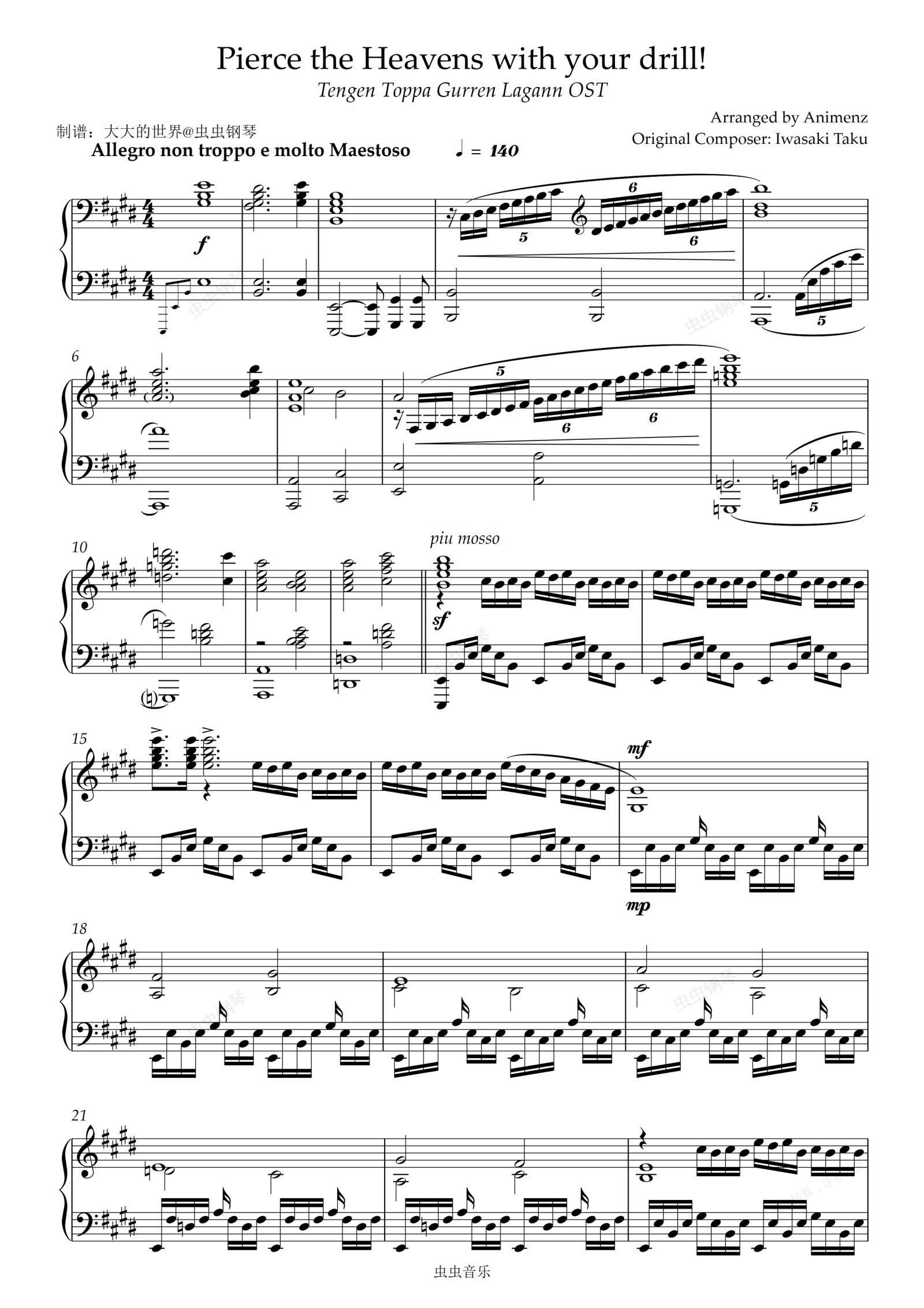 钢琴谱:【Animenz版】With Your Drill, Pierce The Heavens!! - Gurren Lagann OST