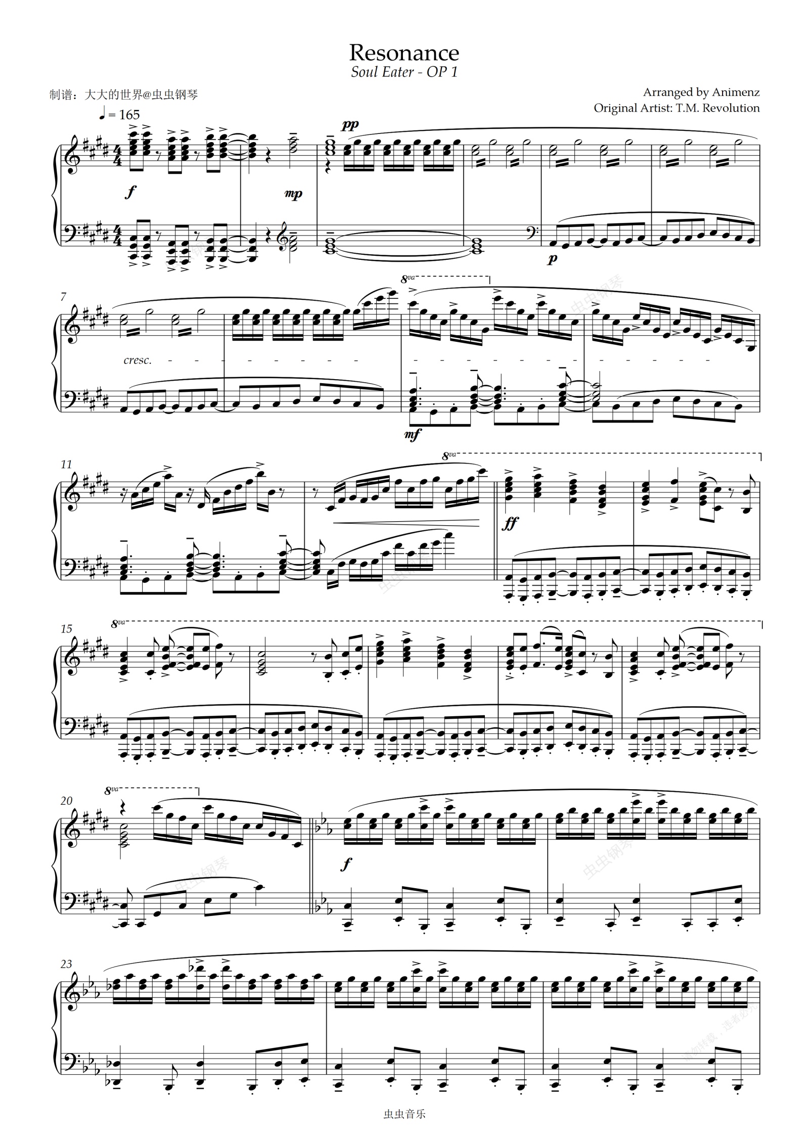 钢琴谱:【Animenz版】Resonance - Soul Eater OP1