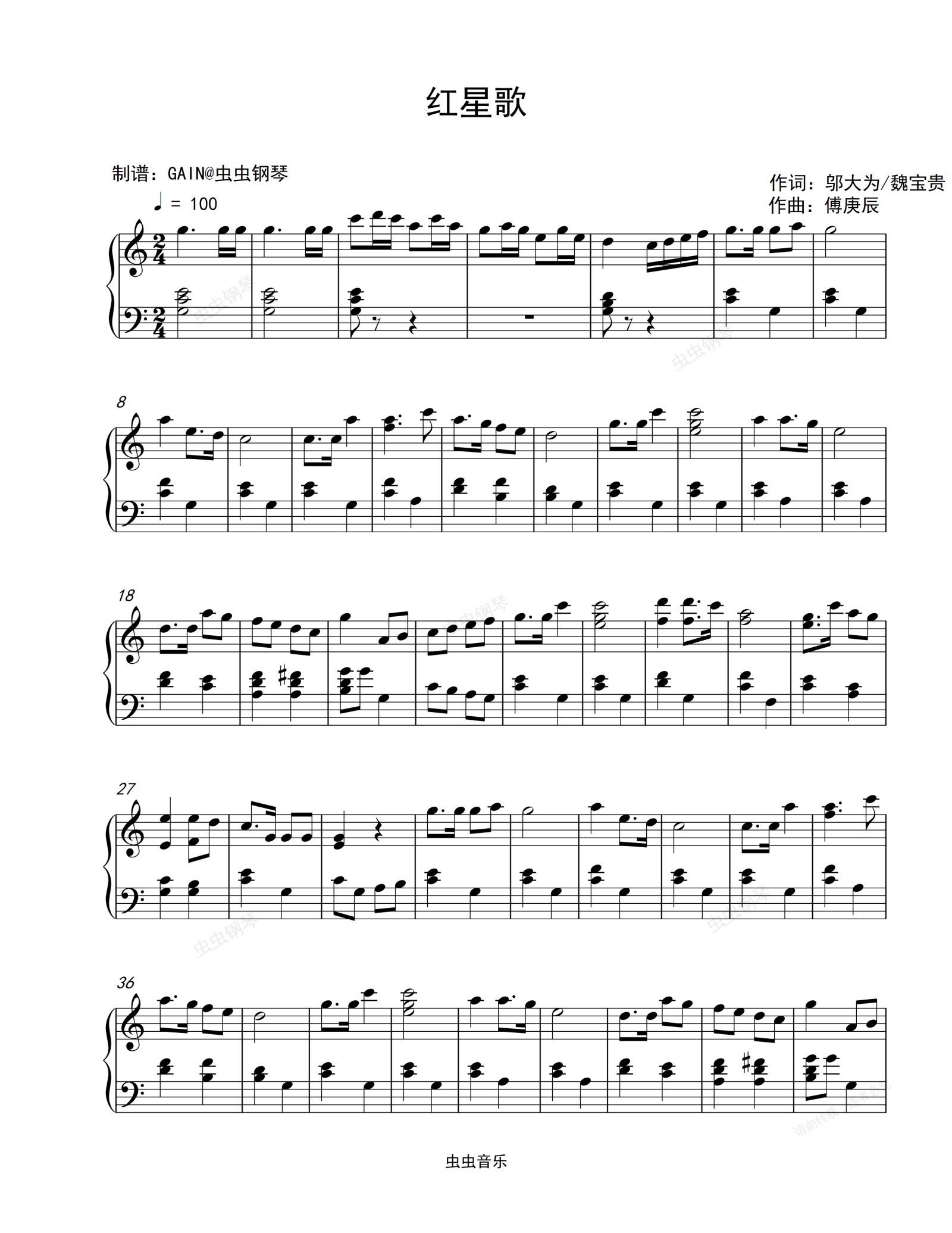 钢琴谱:红星歌-红星闪闪放光彩-傅庚辰