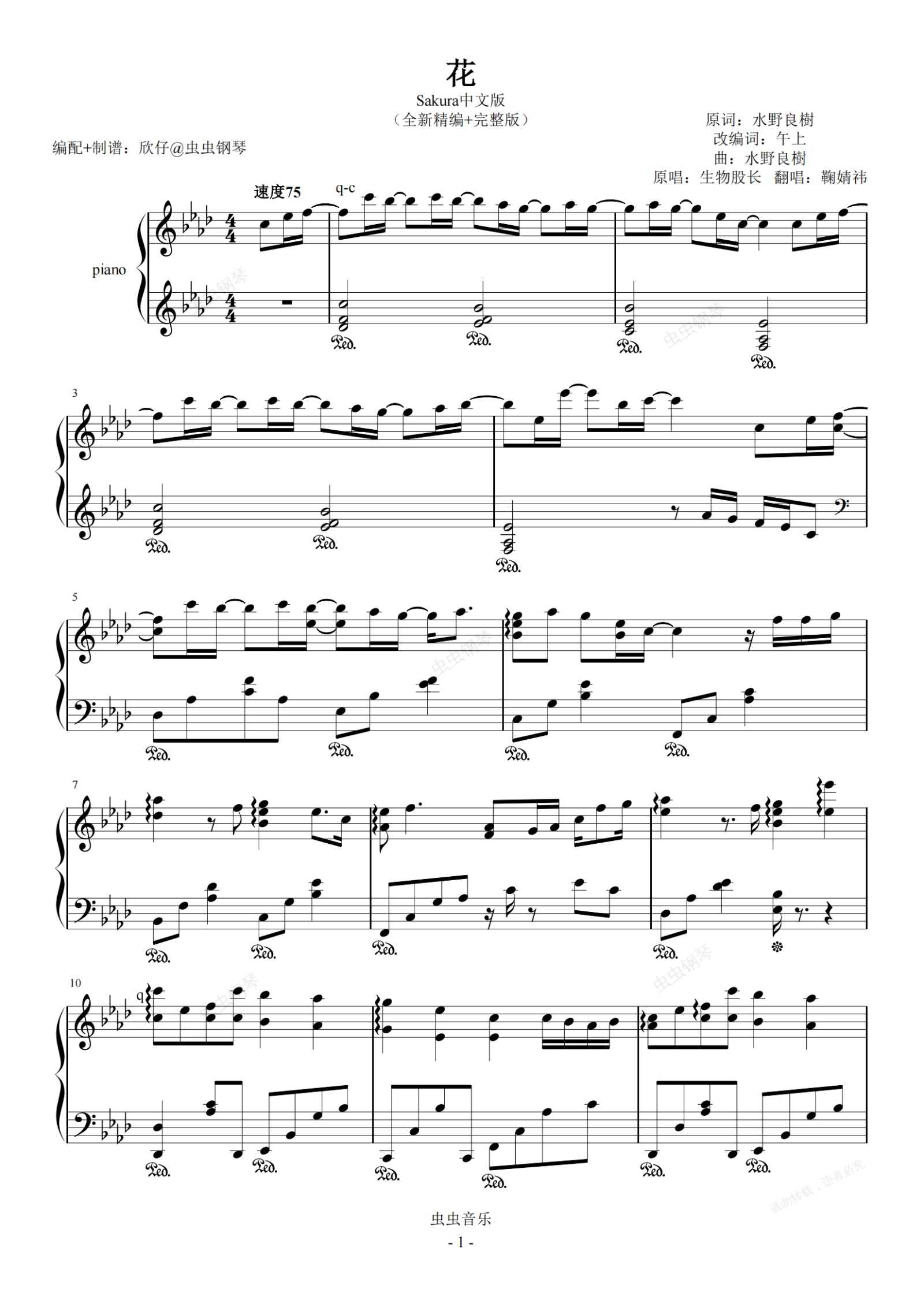 钢琴谱:鞠婧祎f-花(《Sakura》中文版、全新精编+完整版)