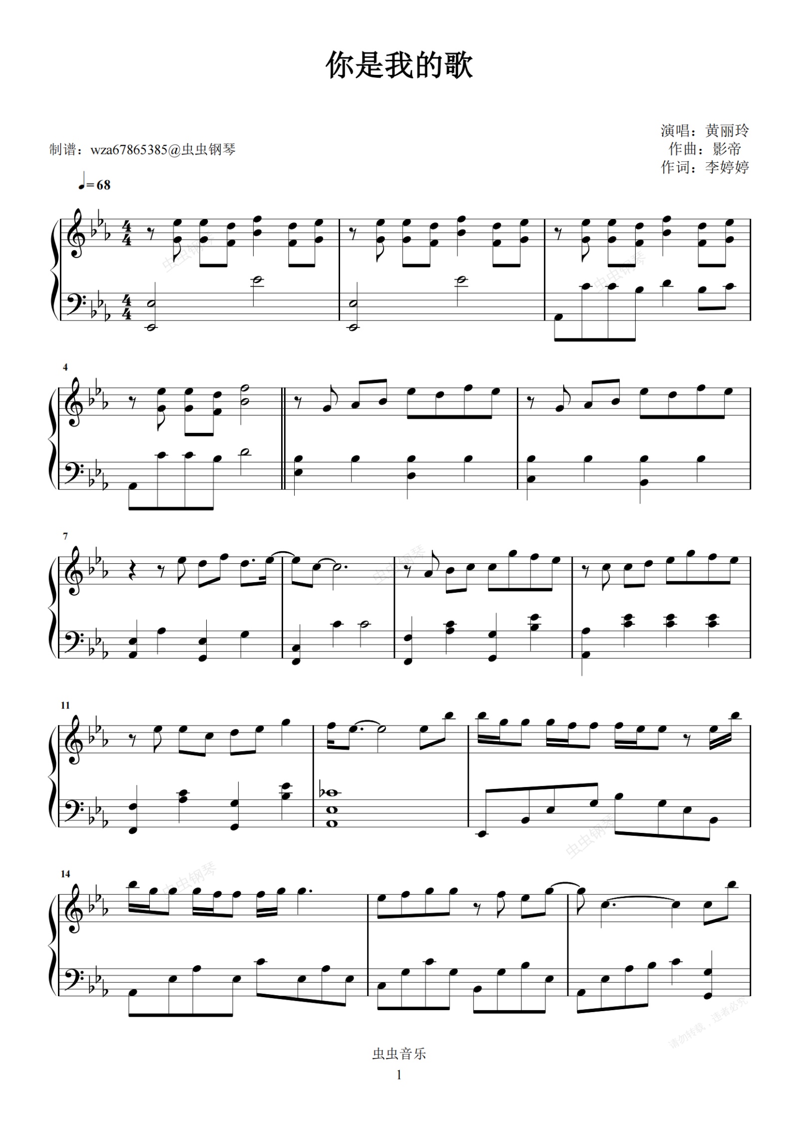 钢琴谱:你是我的歌