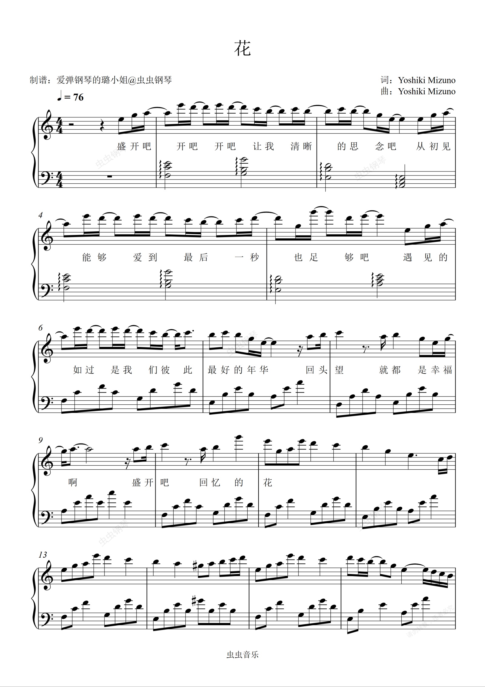 钢琴谱:花(鞠婧祎)- C调简易版 - 附歌词
