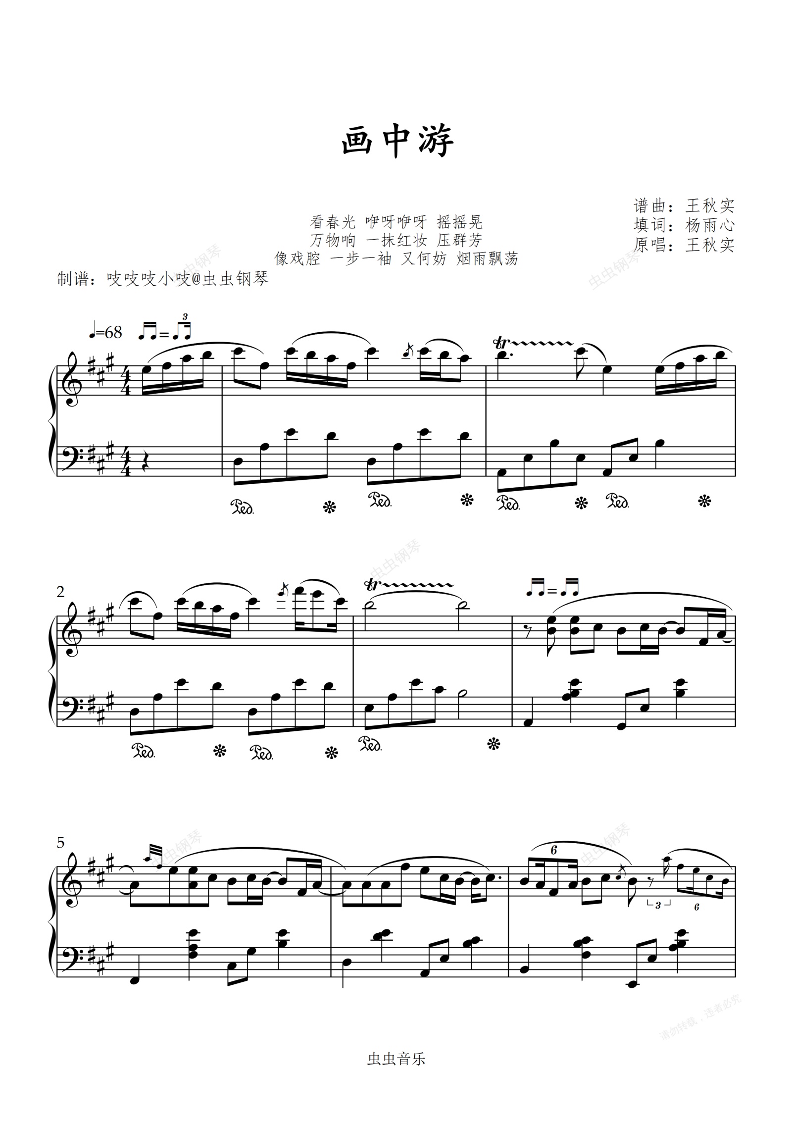 钢琴谱:画中游-A调 【中级难度】王秋实 吱吱编配
