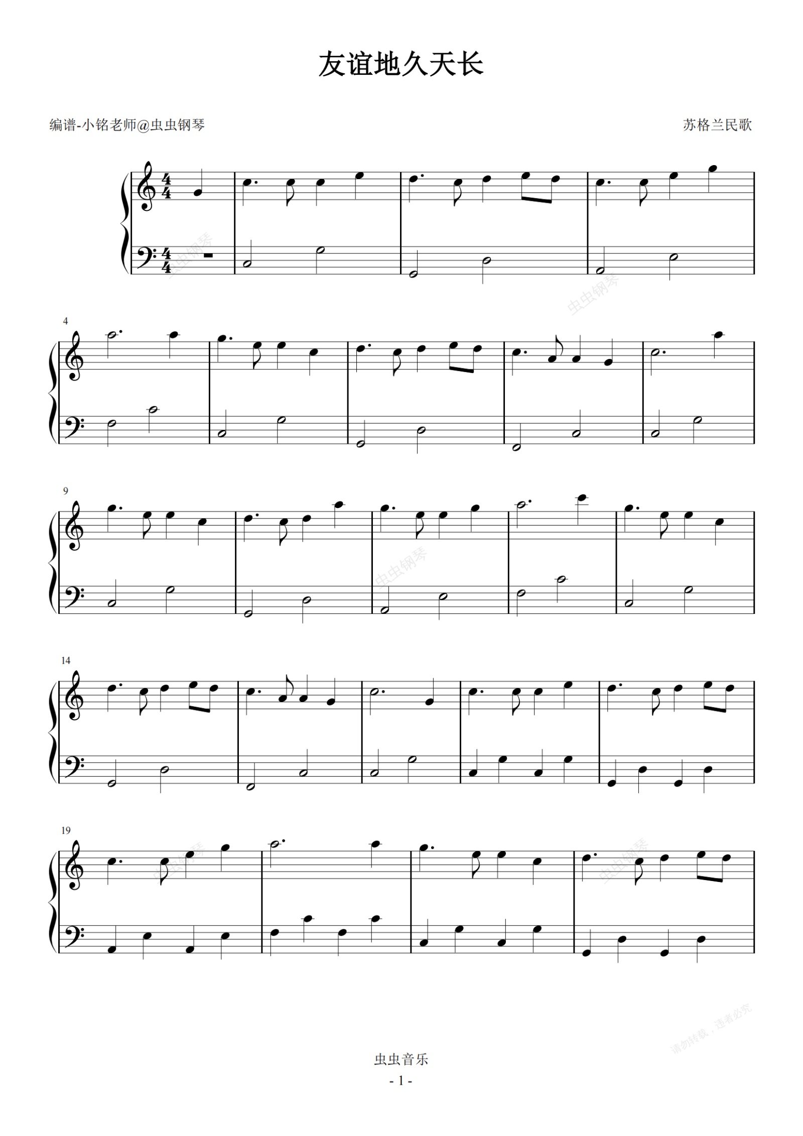 钢琴谱:友谊地久天长【快乐学儿歌】