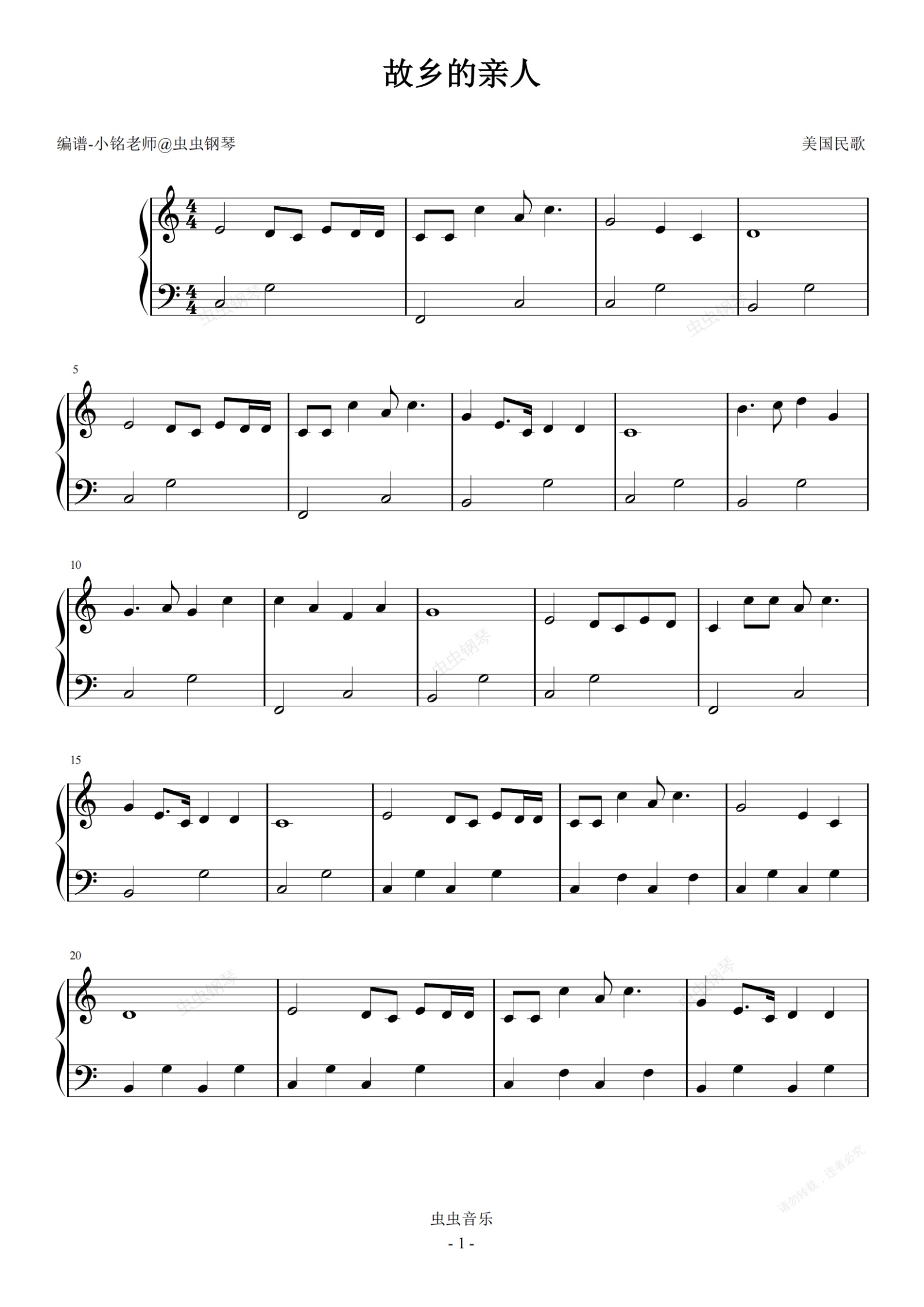 钢琴谱:故乡的亲人【快乐学儿歌】