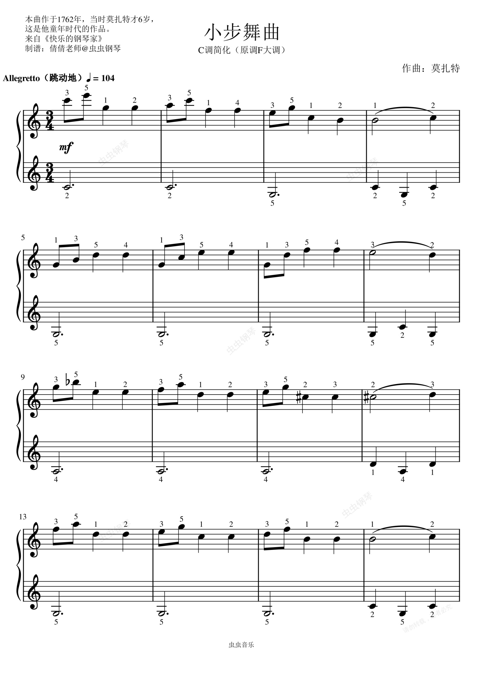 钢琴谱:小步舞曲-C调简化-莫扎特
