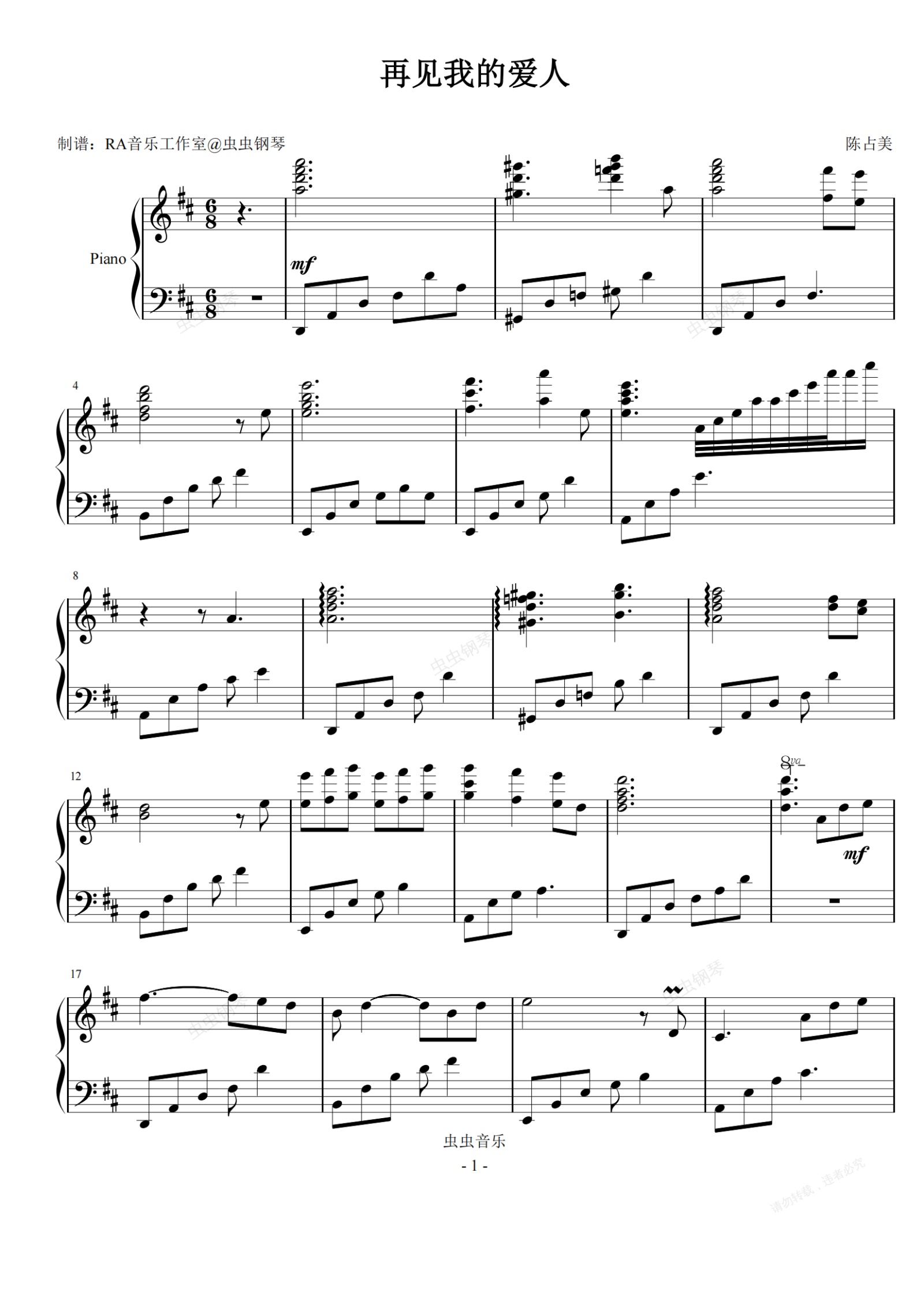 钢琴谱:再见我的爱人-邓丽君-陈占美版本