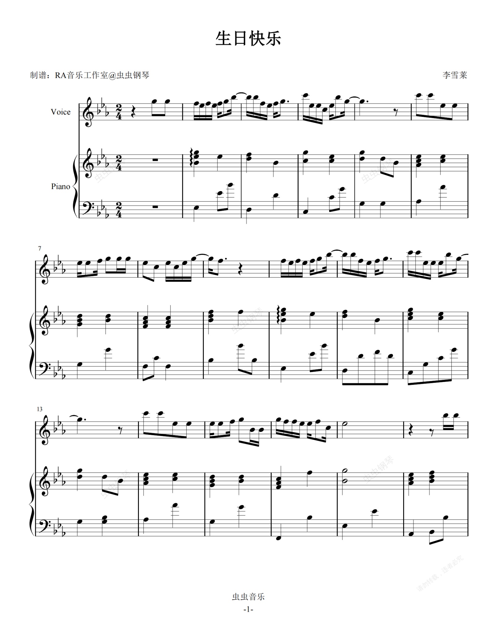 钢琴谱:《生日快乐》-李雪莱-钢琴伴奏谱 欢乐版