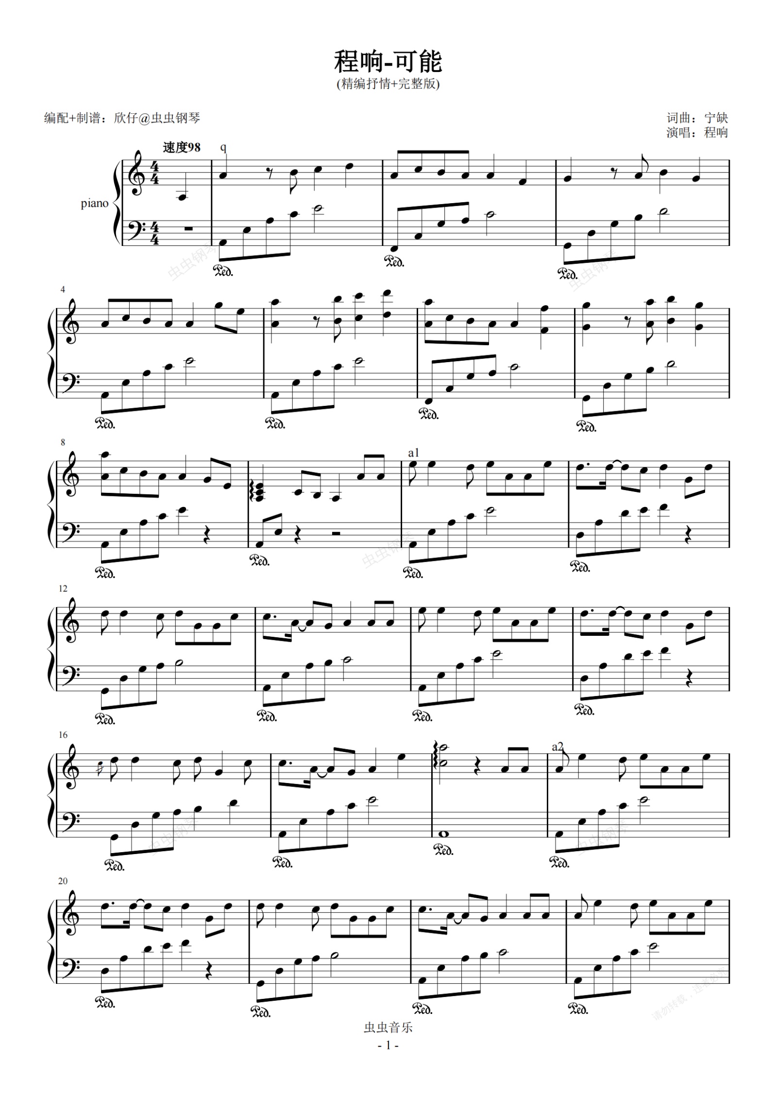 钢琴谱:程响-a《可能》(精编抒情+完整版)