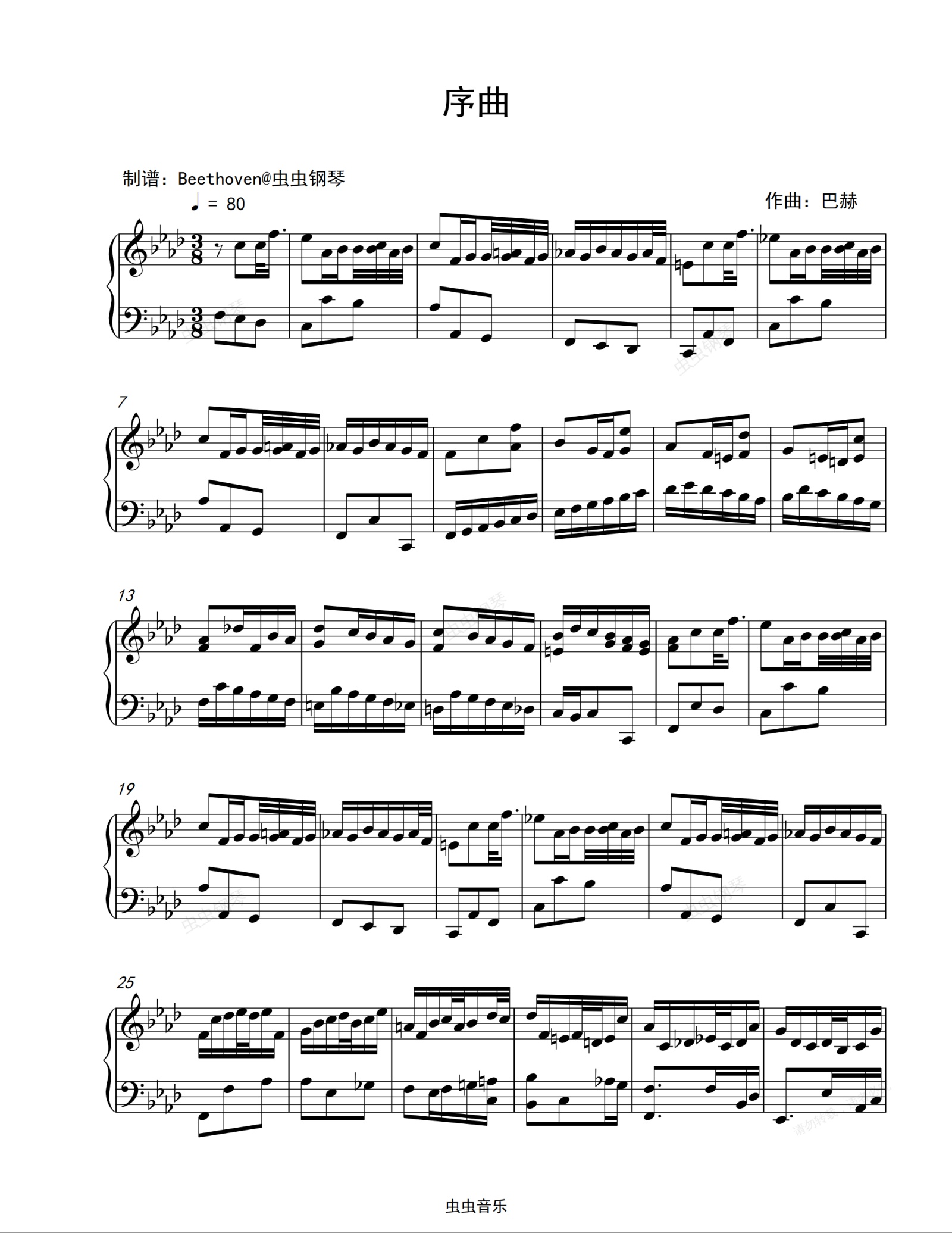 钢琴谱:序曲28-巴赫初级钢琴曲集-巴赫