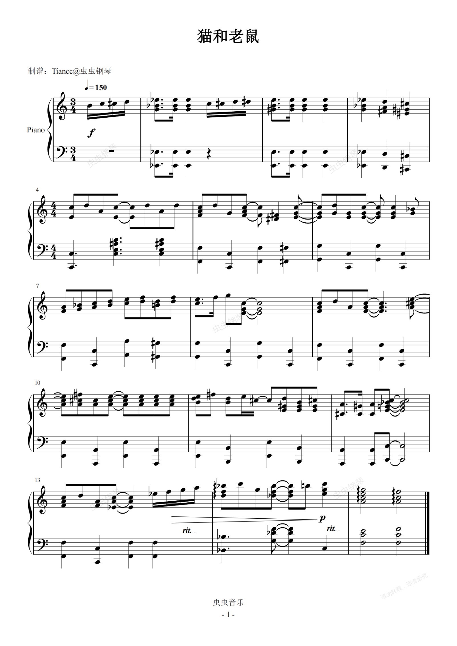 钢琴谱:《猫和老鼠》经典主题曲