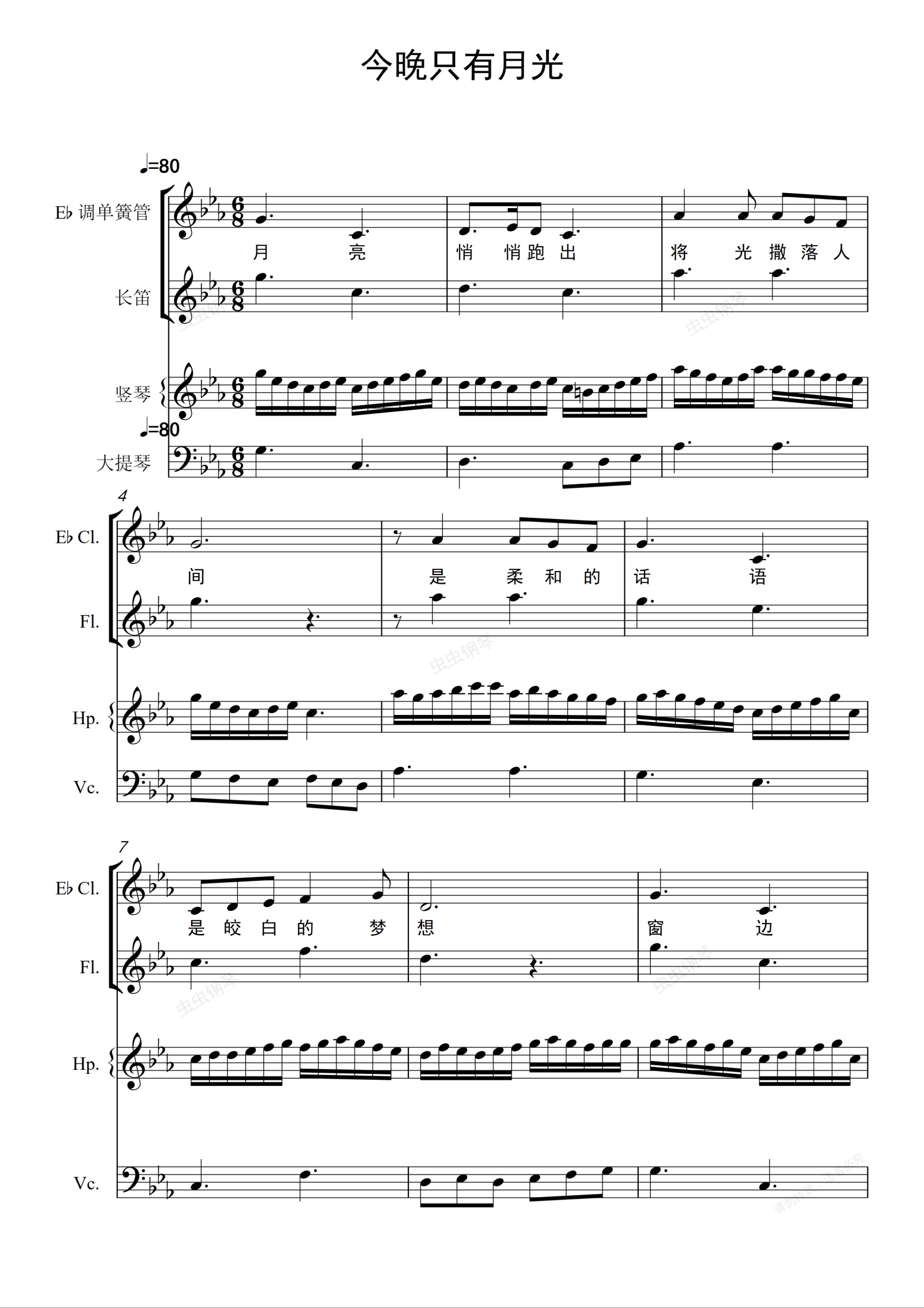 钢琴谱:今晚只有月光——原创音乐剧《永恒的太阳》抒情选段
