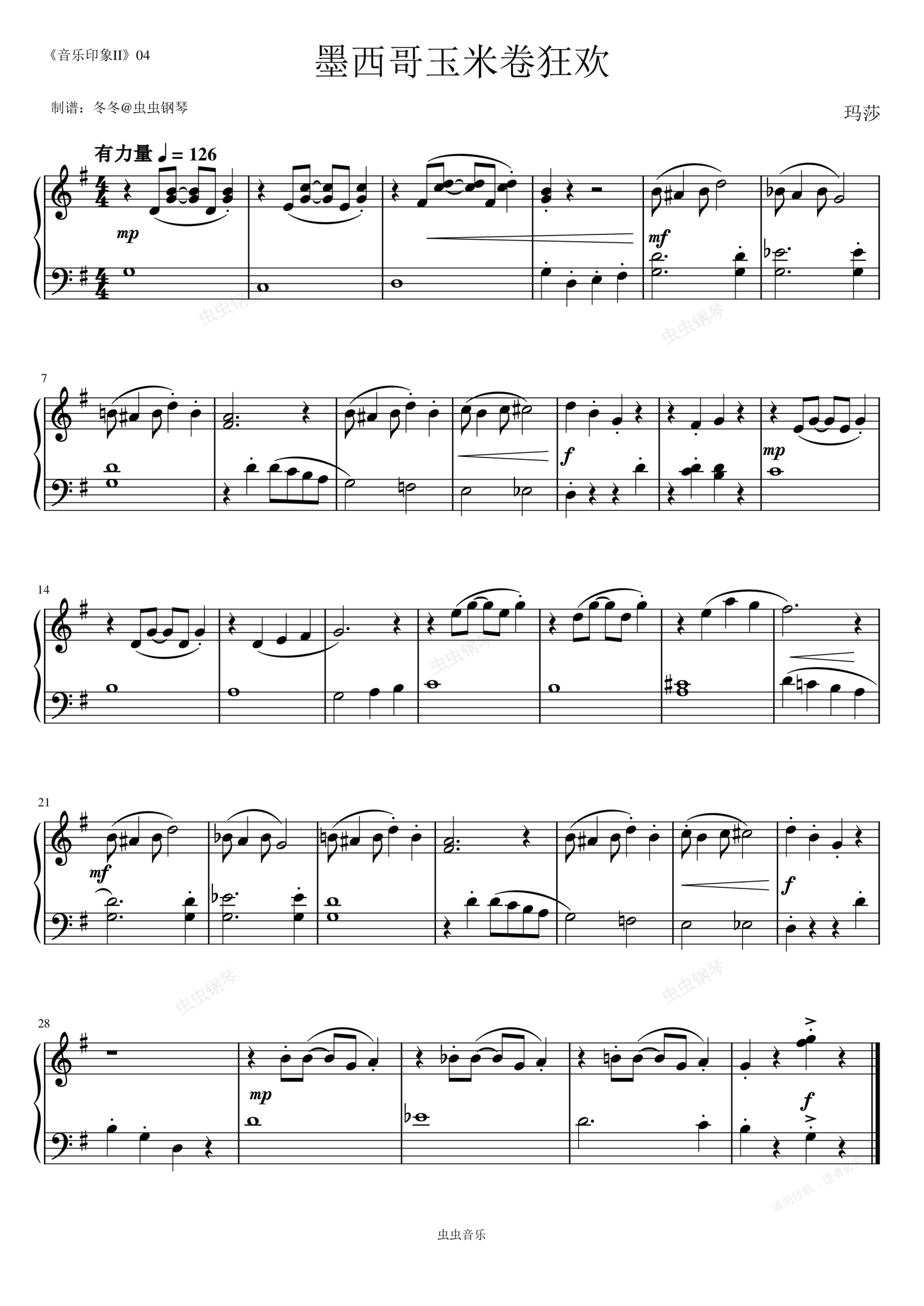钢琴谱:墨西哥玉米卷狂欢