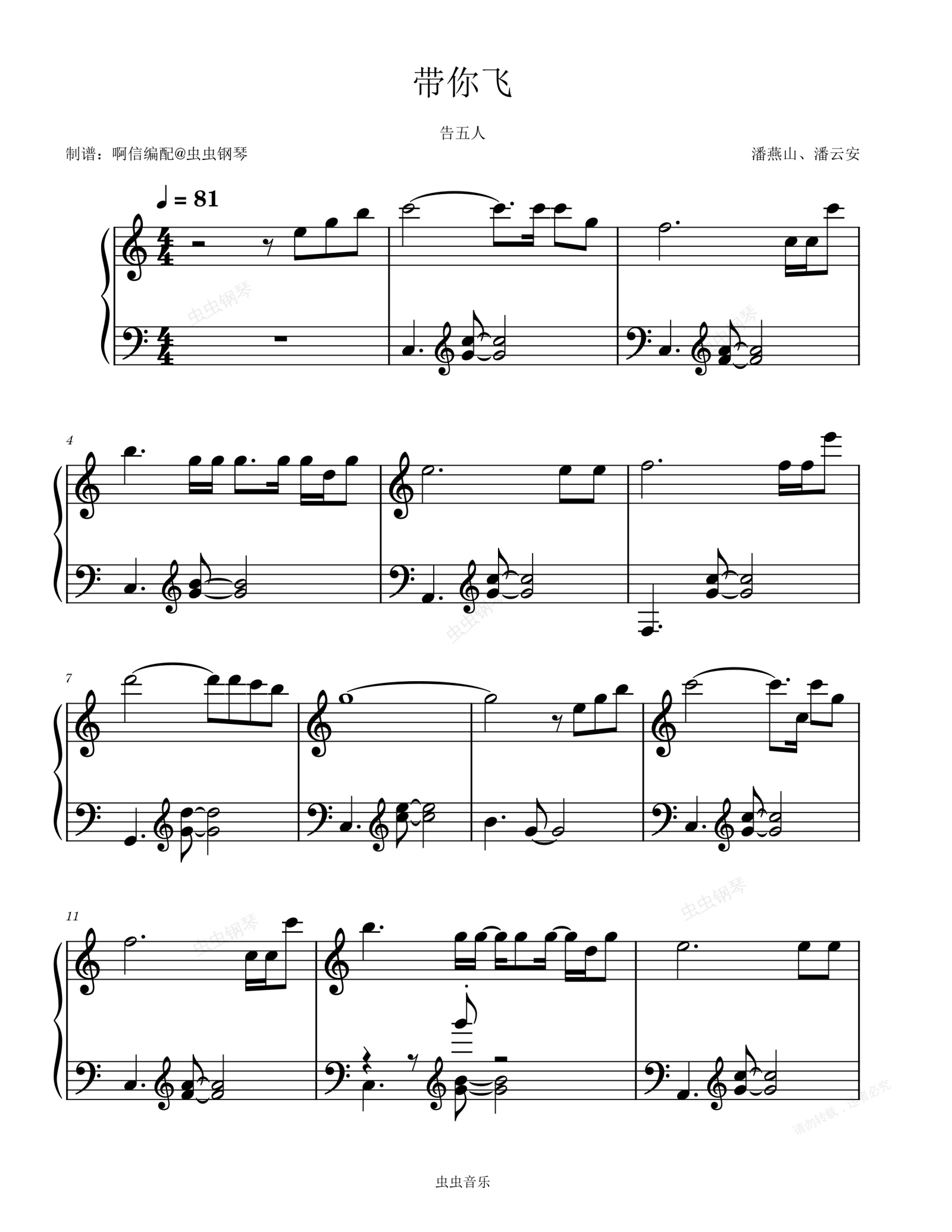 钢琴谱:带你飞-告五人-C调-啊信编配