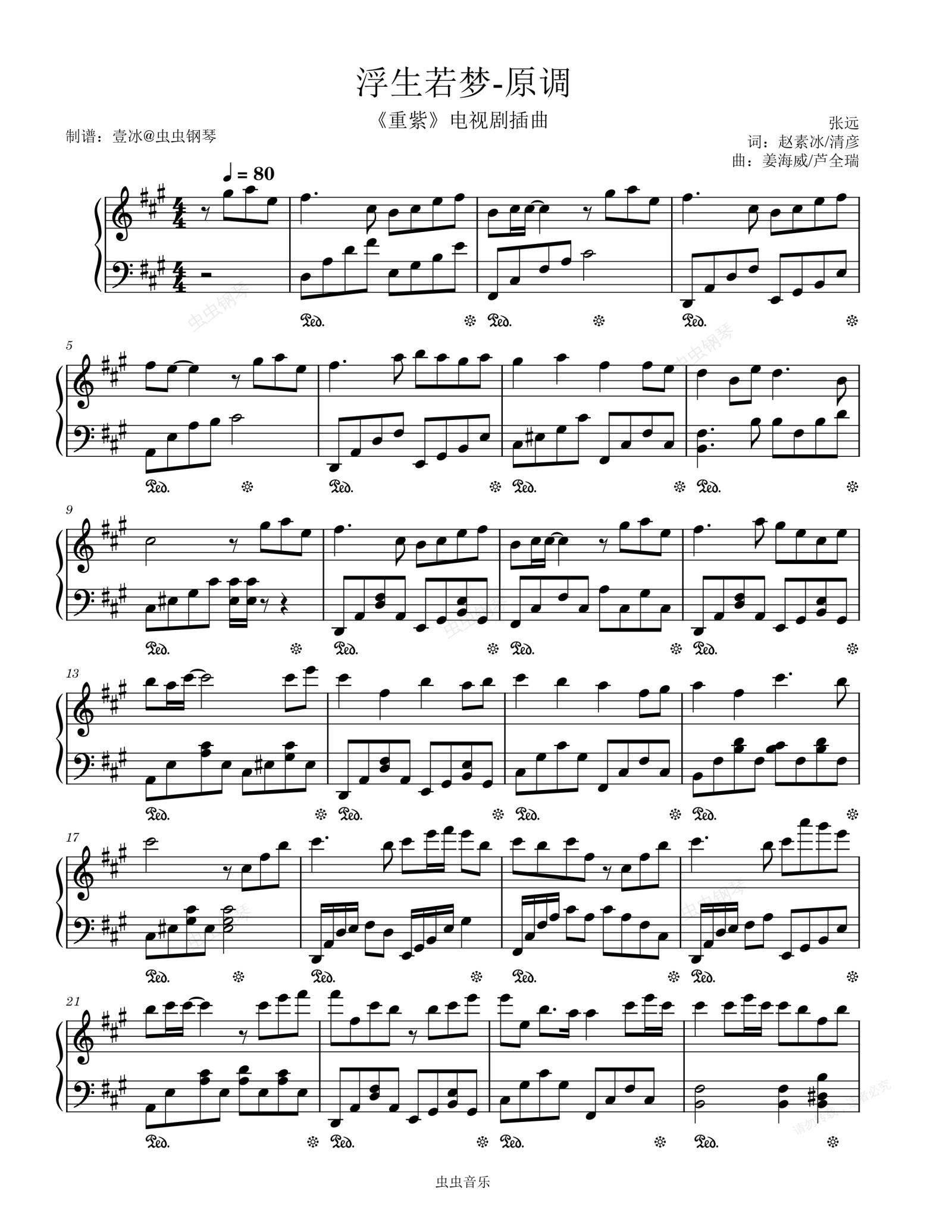 钢琴谱:浮生若梦//《重紫》电视剧插曲-原调