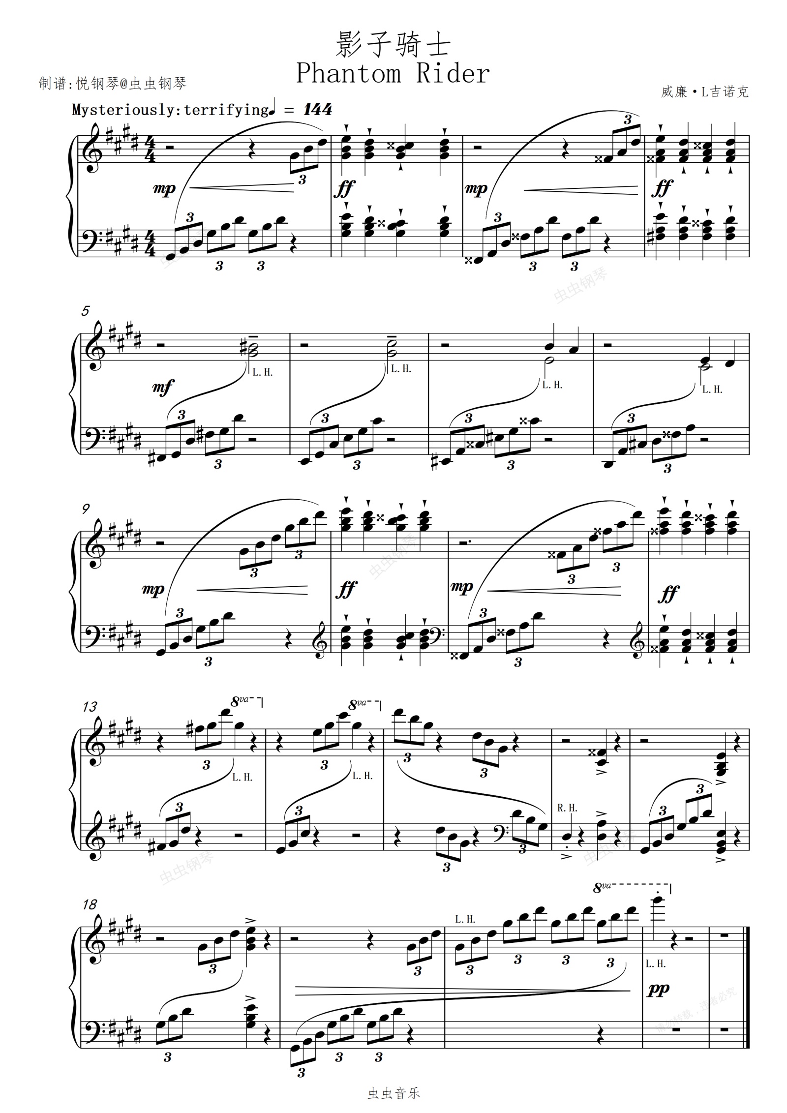 钢琴谱:影子骑士//Phantom Rider【神秘可怕的】