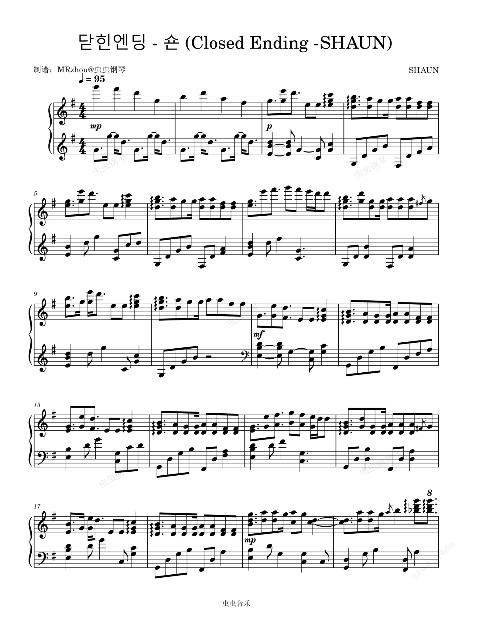 钢琴谱:닫힌 엔딩 (Closed Ending) - SHAUN