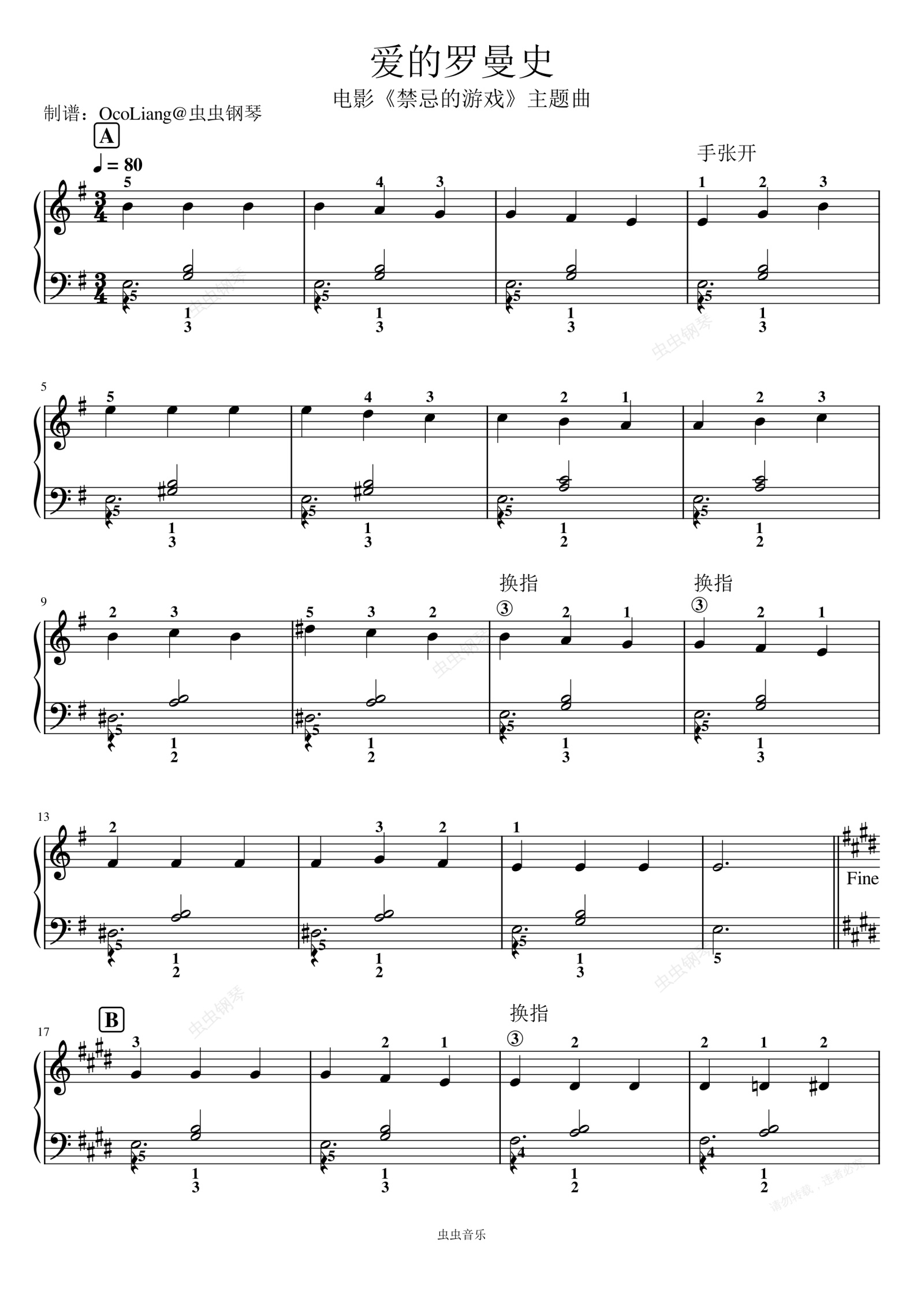钢琴谱:爱的罗曼史 电影《禁忌的游戏》主题曲